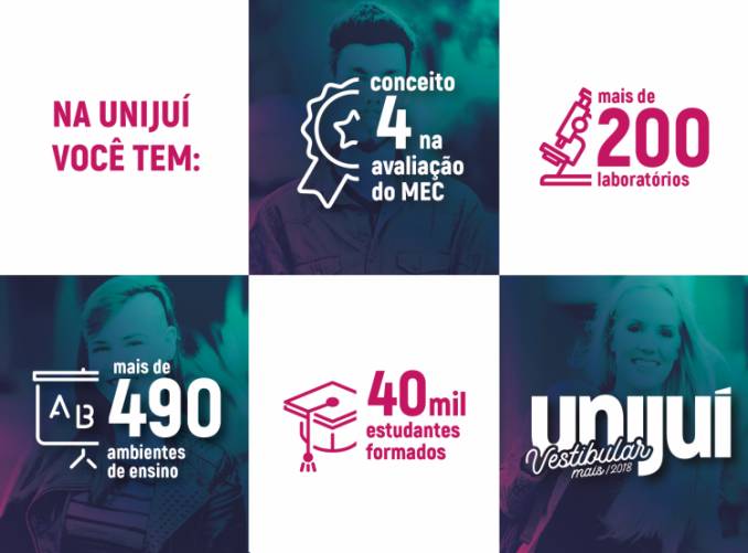 É tempo de fazer a diferença, de fazer escolhas certas e de mudar o mundo em que se vive. Com isso, escolher uma Universidade com credibilidade, com estrutura adequada para viver, aprender e transformar o mundo é o primeiro passo. A Unijuí, com mais de 60 anos de história na região noroeste do estado, investe em tecnologia e inovação para contribuir com o desenvolvimento regional.