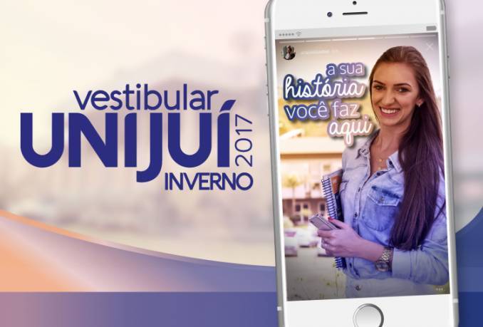 Campanha - O Vestibular de Inverno encerra o posicionamento inaugurado no Vestibular de Verão, encerrando um ciclo de comunicação. Com o mote “A sua história você faz aqui”, a campanha busca retratar histórias de pessoas reais, mostrando toda a trajetória do estudante que tem a sua formação profissional na Unijuí. A campanha é protagonizada pela egressa do curso de Jornalismo, Ana Louíse Diel, que ao longo de sua trajetória acadêmica, sempre compartilhou em suas redes sociais momentos de sua graduação, valorizando a sua relação com a Universidade.