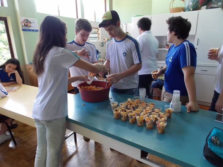 Segundo o professor Claudio, através da salada de frutas pode se ver do que cada fruta é composta, quais os tipos de substâncias se têm, se amido em uma, vitaminas em outras, sais minerais, etc. O trabalho consistiu em tentar colocar cada fruto em seu grau de necessidade para o corpo e também começar os estudos da Pirâmide alimentar, complementa o professor.