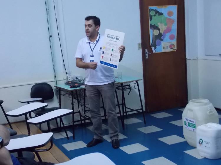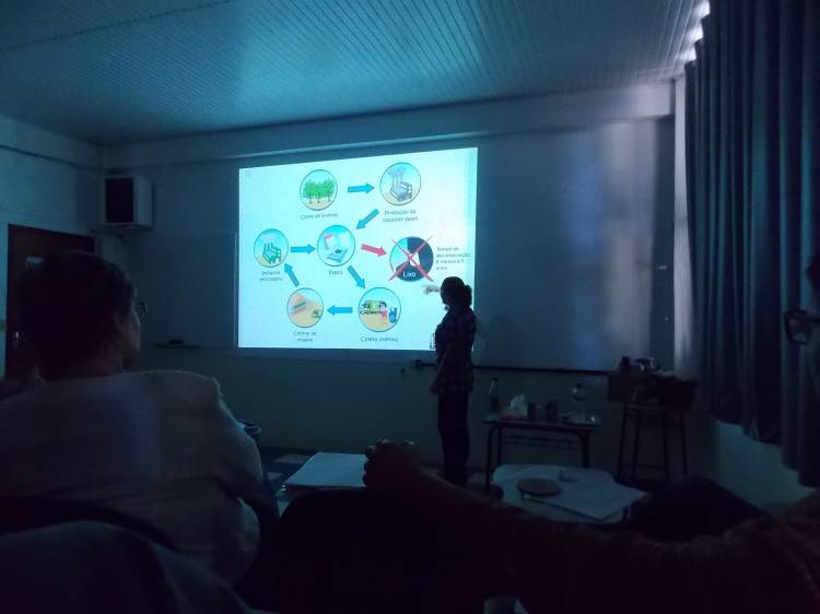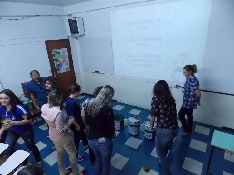 Na oportunidade professores e funcionários puderam tirar duvidas e se atualizar a cerca informações sobre o tema “reciclagem e destinação correta de resíduos”. O trabalho constituiu na realização de uma oficina onde foi discutido os tipos de resíduos que produzimos na escola e em nossas casas, assim como a forma mais adequada para destinar corretamente os mesmos, assim facilitando o processo da reciclagem. Nos dias 15 e 16 de abril a Secretaria de Meio Ambiente estará oportunizando oficinas, também, para alunos do ensino fundamental e médio.