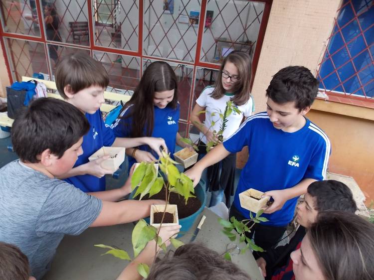 Em alusão a semana do Meio Ambiente o Centro de Educação Básica Francisco de Assis – EFA realizou na tarde desta quarta feira, 10 de junho uma Oficina de Bonsai. Participaram das atividades os alunos da turma C71. Os trabalhos foram coordenados pelos professores da Escola, Claudio Trindade e Gilmar Walker.