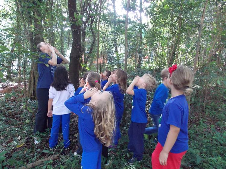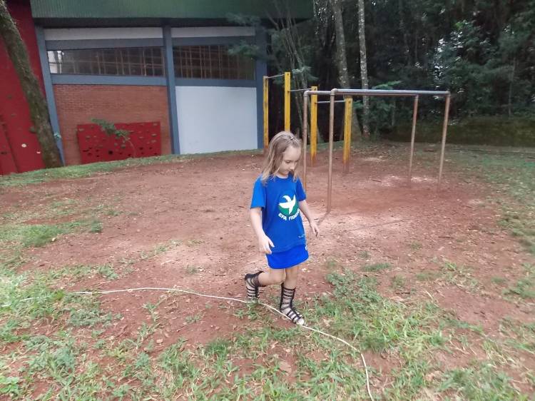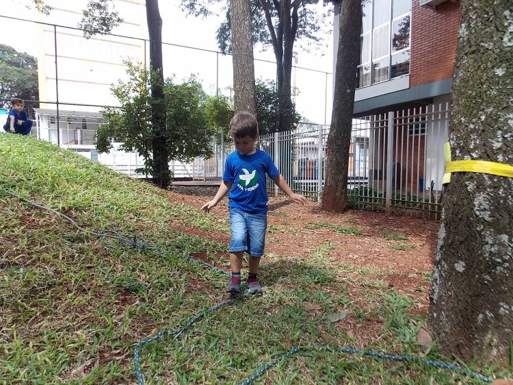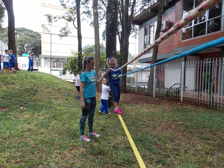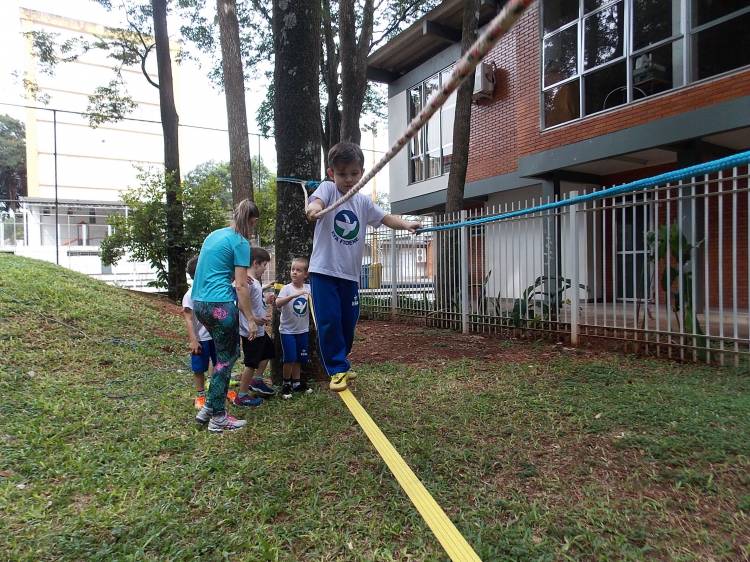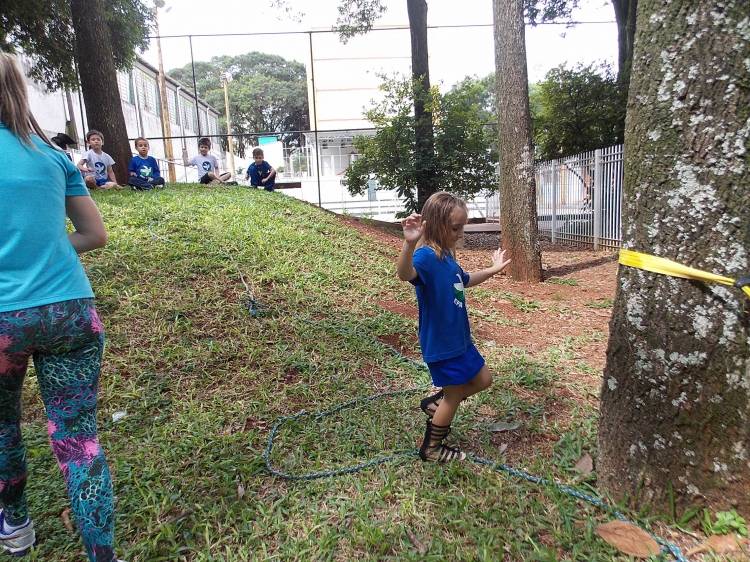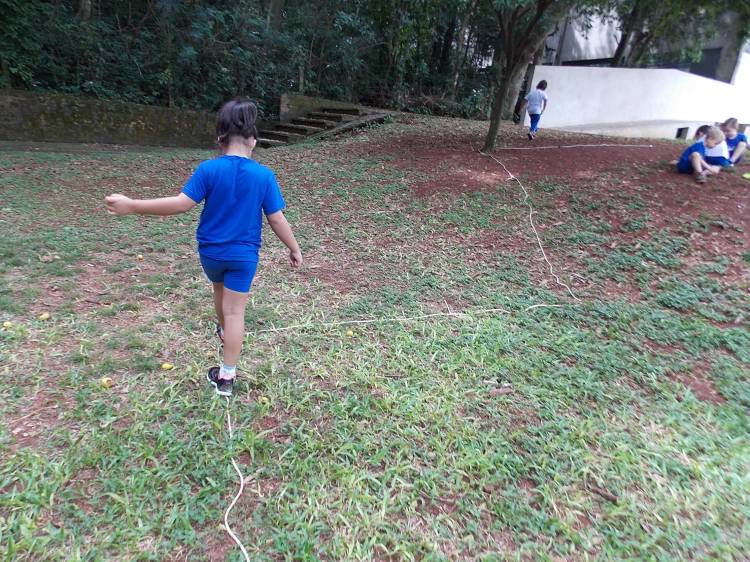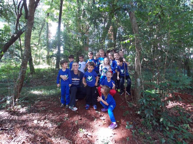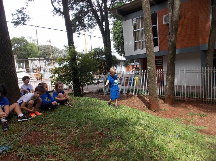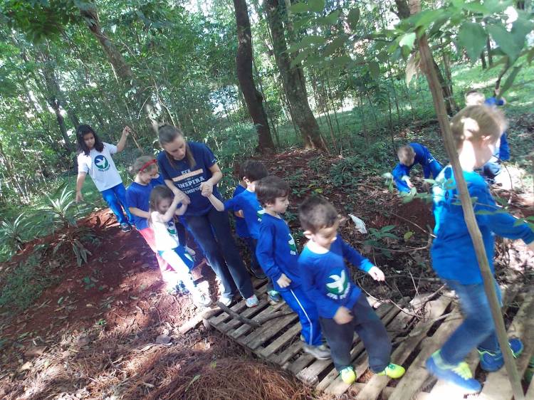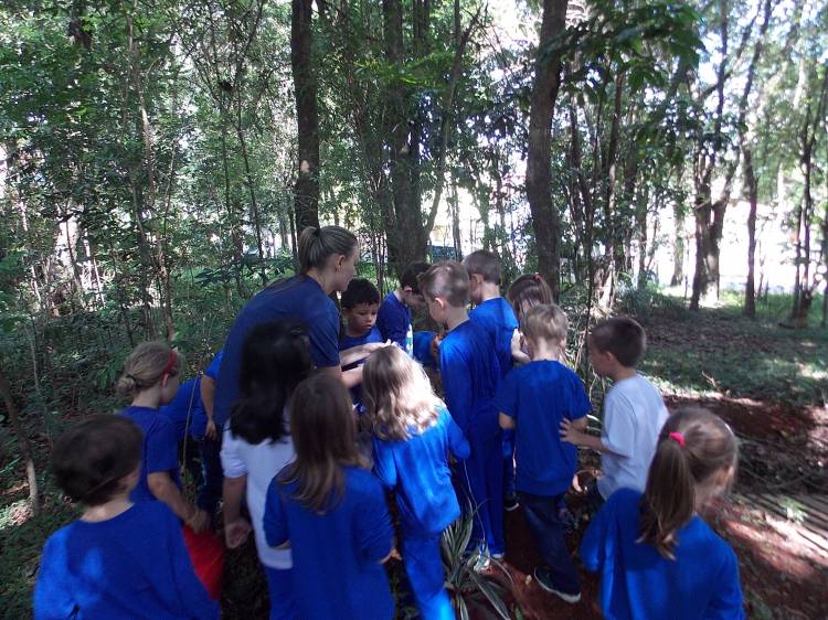Segundo a professora Eduarda Virginia Burckardt, as crianças receberam uma carta do Lobo que mora no bosque, convidando às para irem conhecer o lugar onde ele mora, e perceber as diferenças que tem da casa deles. Nesse misto de entusiasmo e curiosidade a turma foi para o bosque e seguiu as pistas do Lobo, que ajudou as crianças a se localizar e observar o espaço, passando por muitos desafios como: pontes, montanhas, galhos, e o mais importante não se perder no bosque. O arvorismo e o slakline foram vivenciados e explorados pelas crianças, possibilitando uma experiência em meio à natureza, voltada a faixa etária e os objetivos propostos para esta etapa. Segundo a professora, o trabalho com o esporte de orientação, se dá por bússola, porem para esta atividade foi utilizado às dicas do Lobo, e não por mapas que é usado como orientação para alunos maiores.
