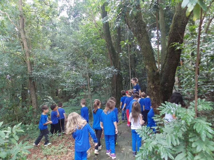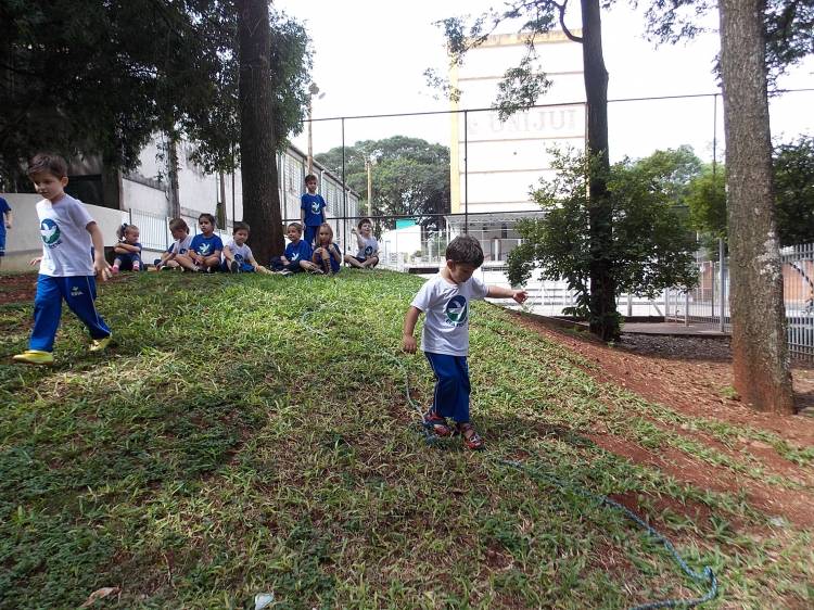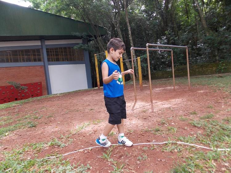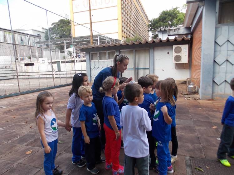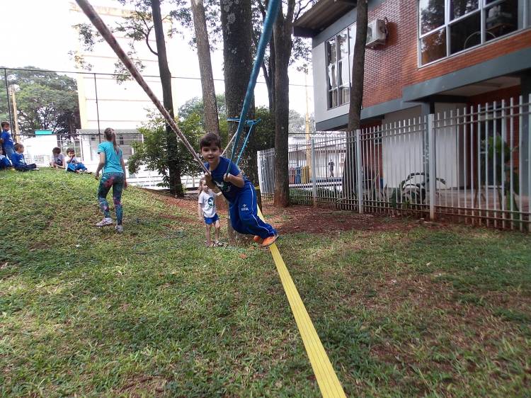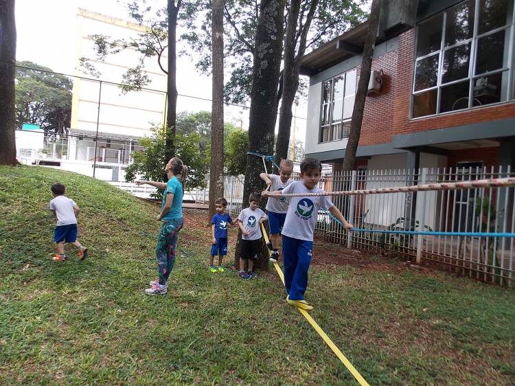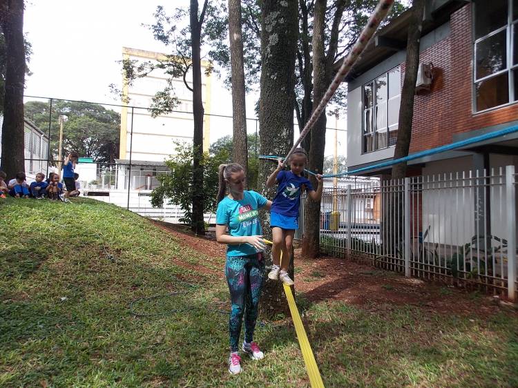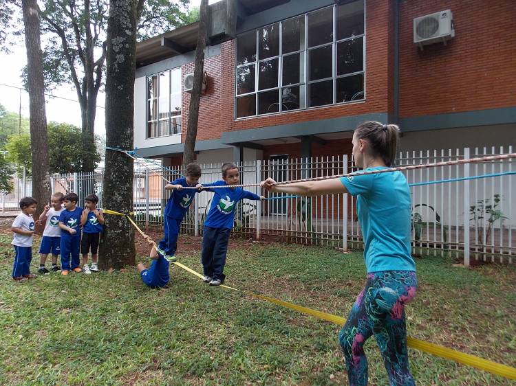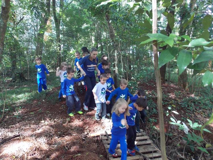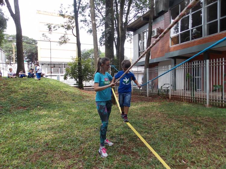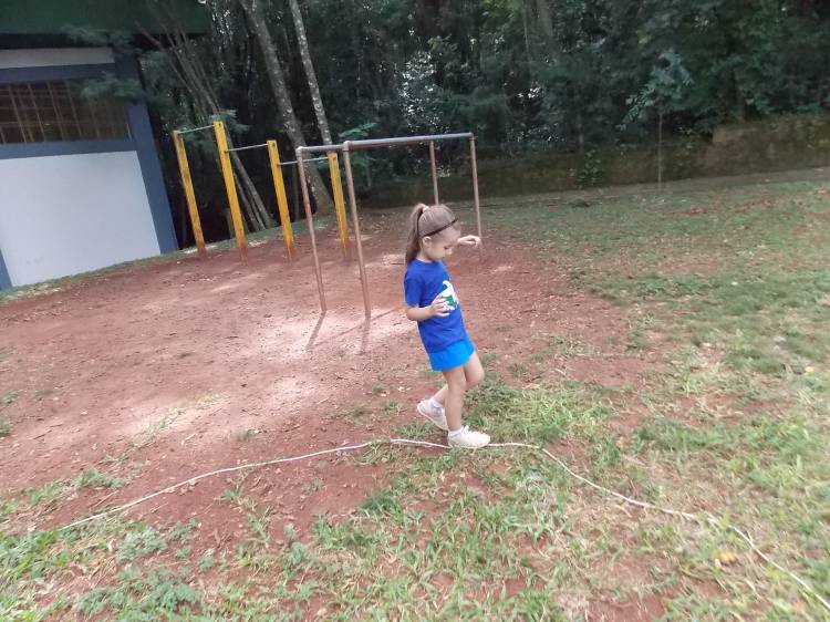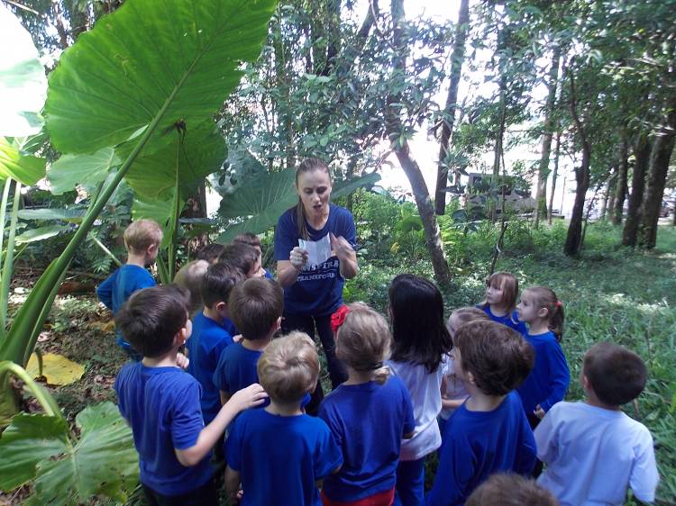 Segundo a professora Eduarda Virginia Burckardt, as crianças receberam uma carta do Lobo que mora no bosque, convidando às para irem conhecer o lugar onde ele mora, e perceber as diferenças que tem da casa deles. Nesse misto de entusiasmo e curiosidade a turma foi para o bosque e seguiu as pistas do Lobo, que ajudou as crianças a se localizar e observar o espaço, passando por muitos desafios como: pontes, montanhas, galhos, e o mais importante não se perder no bosque. O arvorismo e o slakline foram vivenciados e explorados pelas crianças, possibilitando uma experiência em meio à natureza, voltada a faixa etária e os objetivos propostos para esta etapa. Segundo a professora, o trabalho com o esporte de orientação, se dá por bússola, porem para esta atividade foi utilizado às dicas do Lobo, e não por mapas que é usado como orientação para alunos maiores.