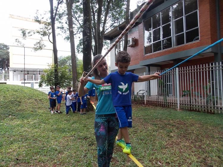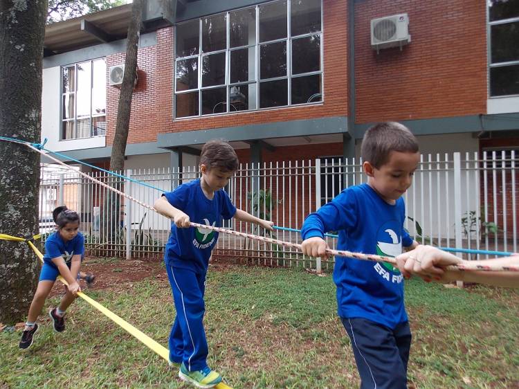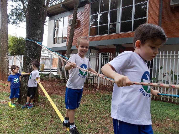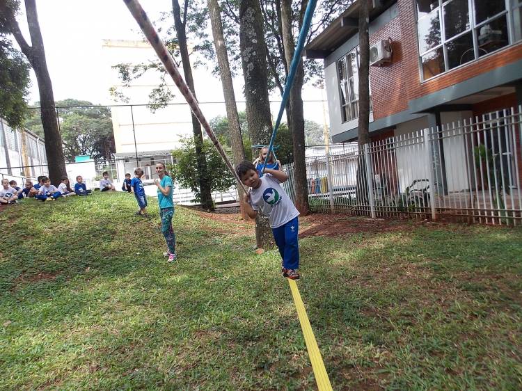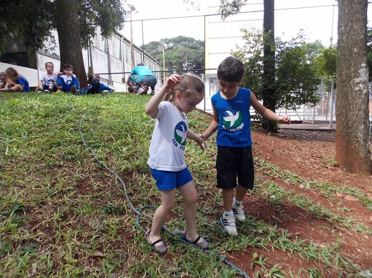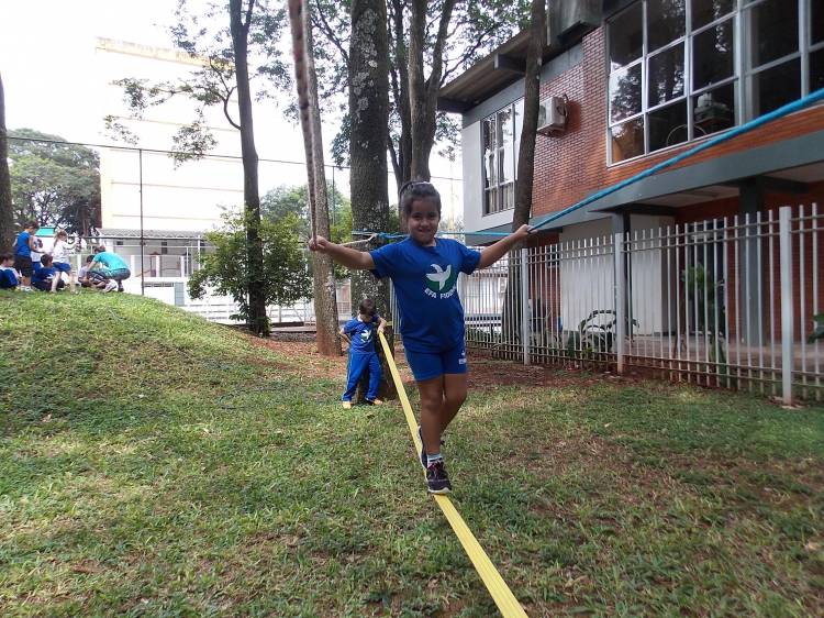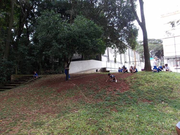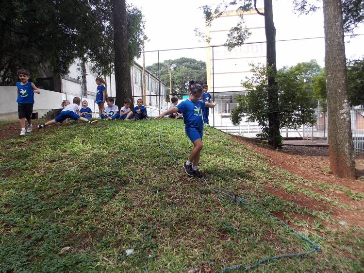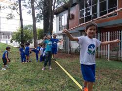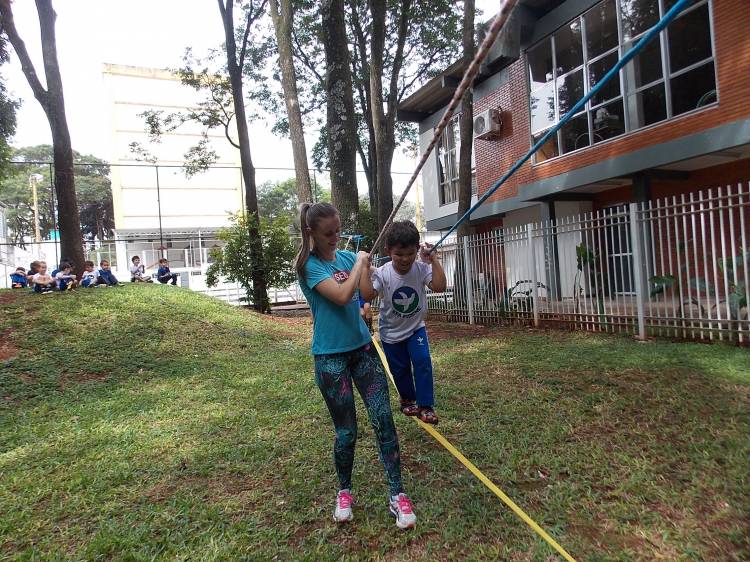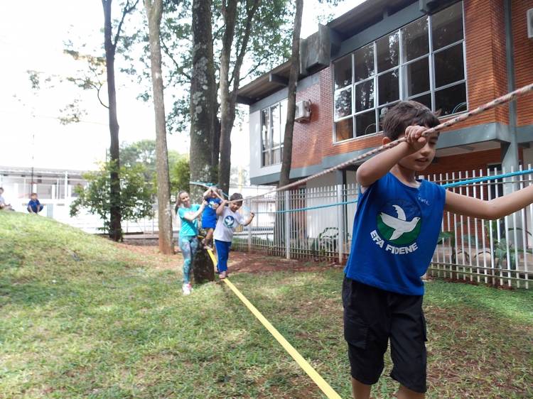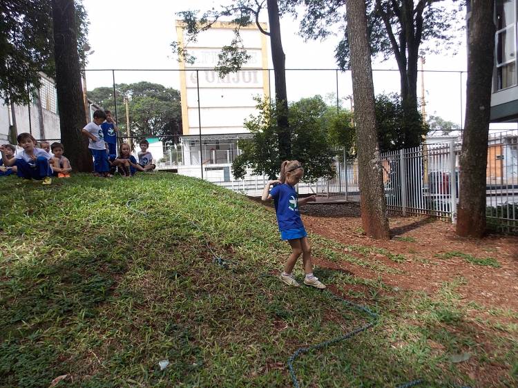 Segundo a professora Eduarda Virginia Burckardt, as crianças receberam uma carta do Lobo que mora no bosque, convidando às para irem conhecer o lugar onde ele mora, e perceber as diferenças que tem da casa deles. Nesse misto de entusiasmo e curiosidade a turma foi para o bosque e seguiu as pistas do Lobo, que ajudou as crianças a se localizar e observar o espaço, passando por muitos desafios como: pontes, montanhas, galhos, e o mais importante não se perder no bosque. O arvorismo e o slakline foram vivenciados e explorados pelas crianças, possibilitando uma experiência em meio à natureza, voltada a faixa etária e os objetivos propostos para esta etapa. Segundo a professora, o trabalho com o esporte de orientação, se dá por bússola, porem para esta atividade foi utilizado às dicas do Lobo, e não por mapas que é usado como orientação para alunos maiores.