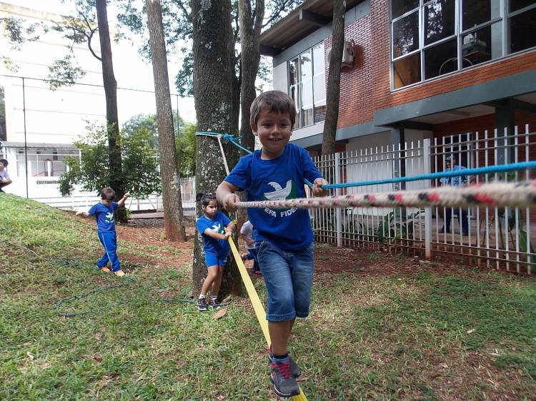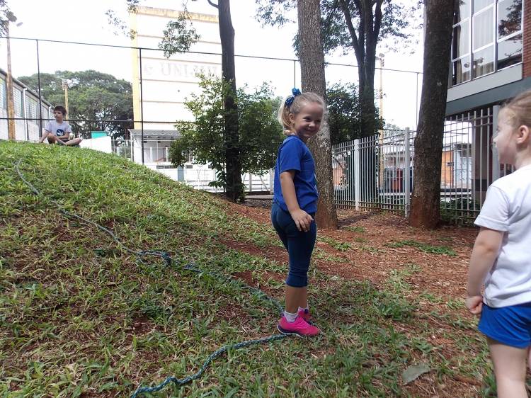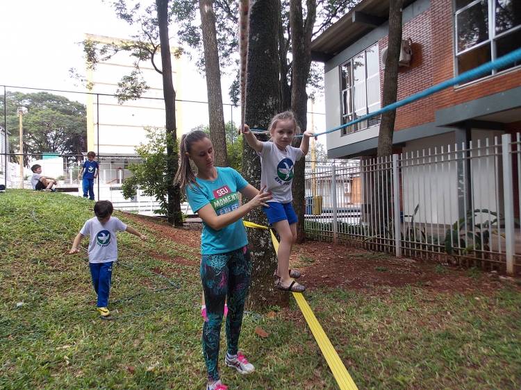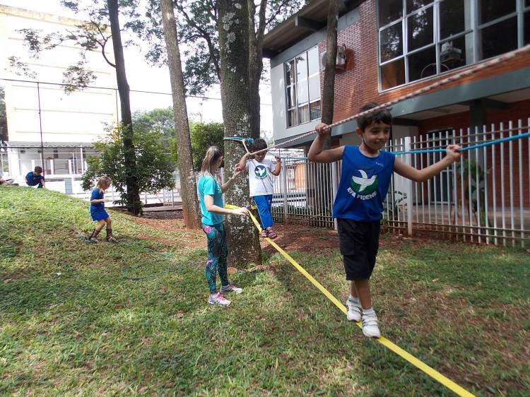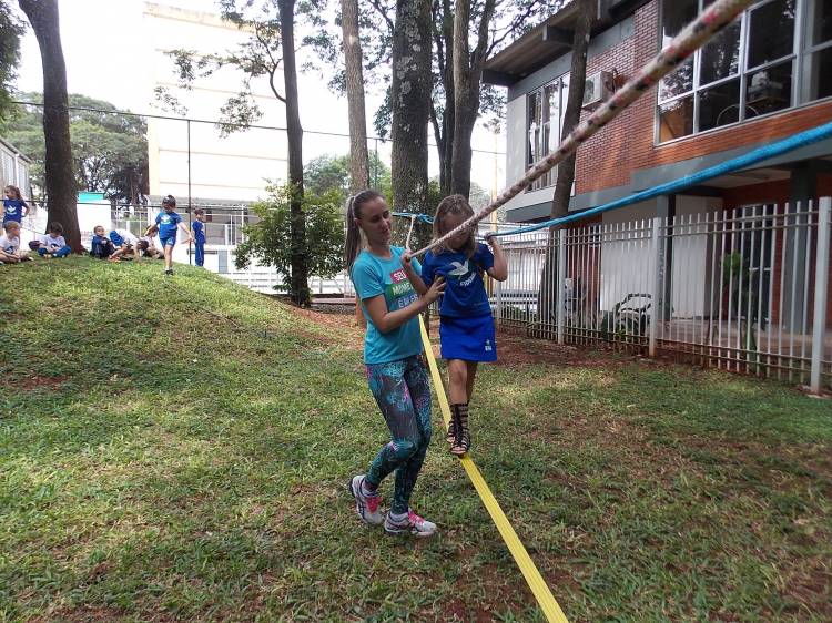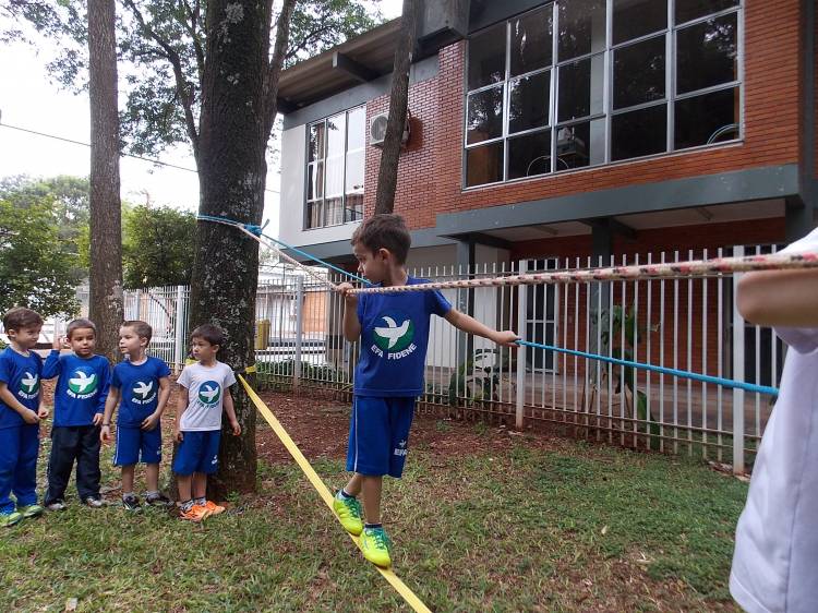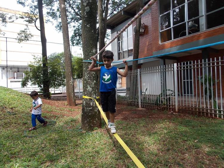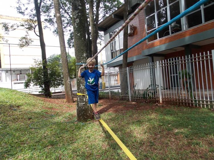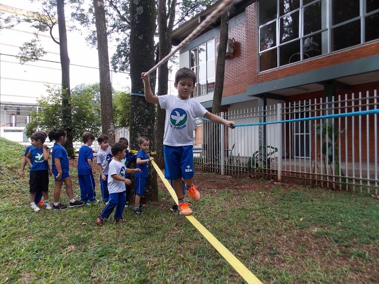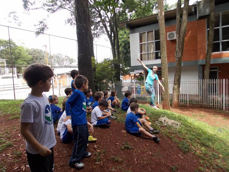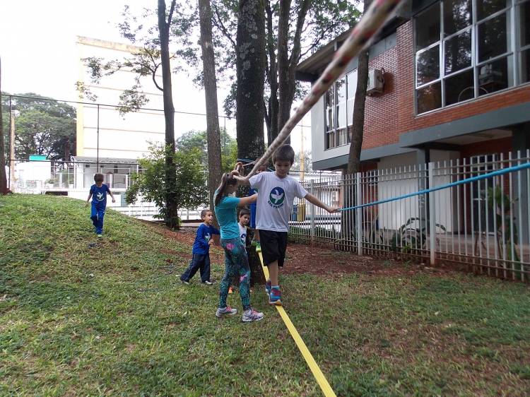 Segundo a professora Eduarda Virginia Burckardt, as crianças receberam uma carta do Lobo que mora no bosque, convidando às para irem conhecer o lugar onde ele mora, e perceber as diferenças que tem da casa deles. Nesse misto de entusiasmo e curiosidade a turma foi para o bosque e seguiu as pistas do Lobo, que ajudou as crianças a se localizar e observar o espaço, passando por muitos desafios como: pontes, montanhas, galhos, e o mais importante não se perder no bosque. O arvorismo e o slakline foram vivenciados e explorados pelas crianças, possibilitando uma experiência em meio à natureza, voltada a faixa etária e os objetivos propostos para esta etapa. Segundo a professora, o trabalho com o esporte de orientação, se dá por bússola, porem para esta atividade foi utilizado às dicas do Lobo, e não por mapas que é usado como orientação para alunos maiores.