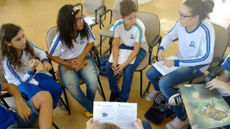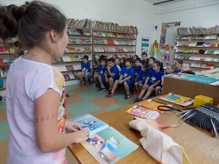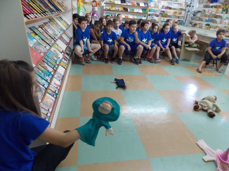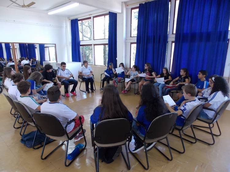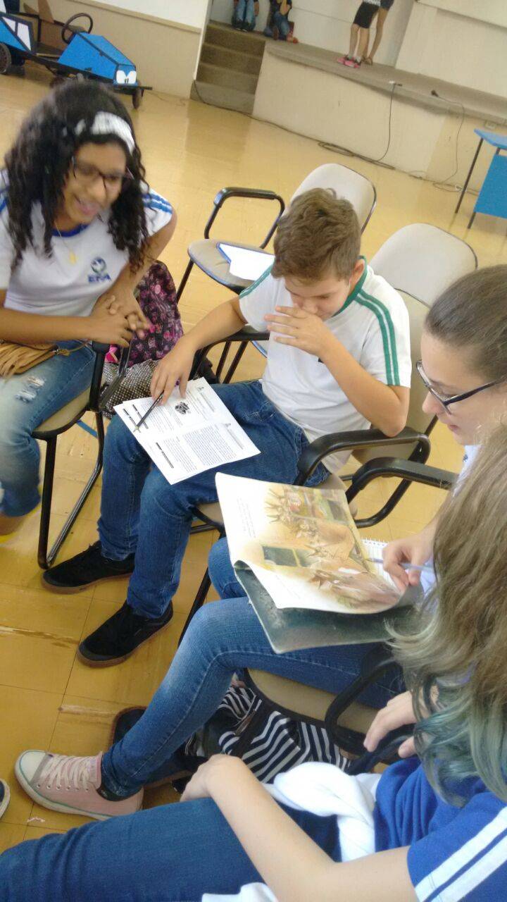 O projeto existe desde 2013. É um trabalho voluntariado de estudantes dos anos finais do ensino fundamental, que se reúnem duas vezes na semana para contarem histórias para crianças. A intenção é valorizar e despertar o gosto pela leitura através de contação de histórias para crianças; trabalhar com diferentes gêneros textuais pela literatura infantil, quadrinhos, poesias, histórias dramatizadas, contos gaúchos; explorar diferentes recursos na contação de histórias como o teatro, as história em vídeo, o uso de fantasias, com bonecos, com música entre outros; desenvolver habilidades e capacidades importantes na atuação de contador de histórias como iniciativa; falar em público, improvisar, criar, concentrar-se para os diferentes momentos, desinibição, assim como, ampliar repertório de histórias.