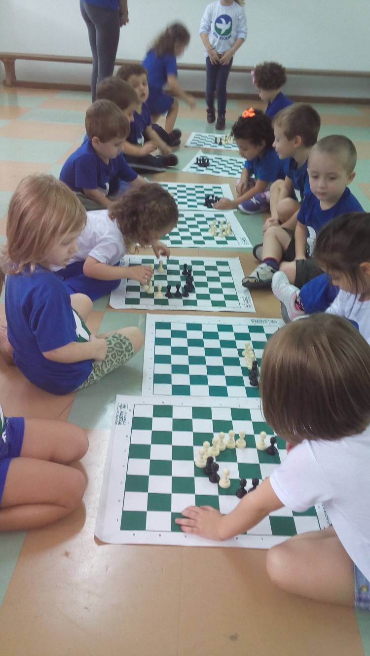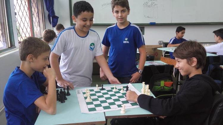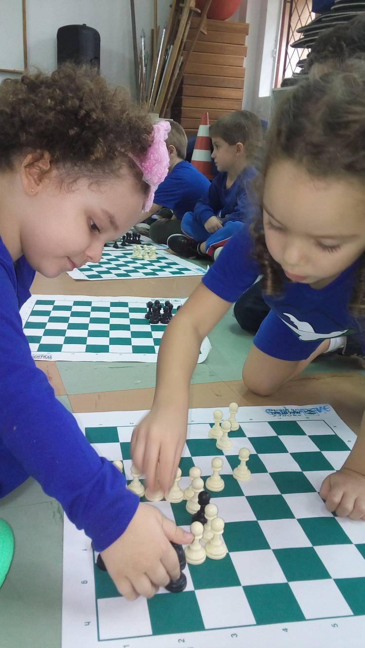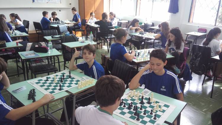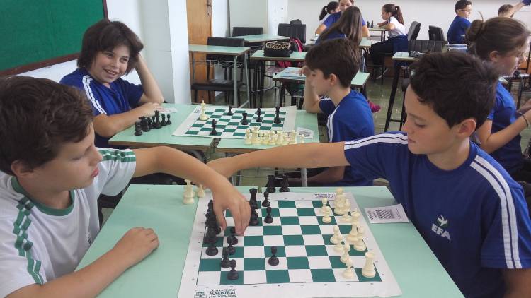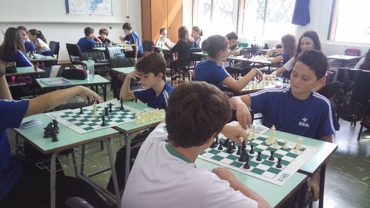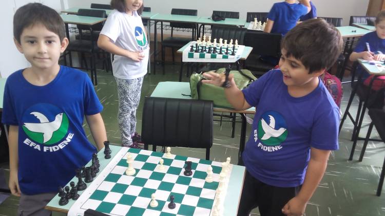 O Centro de Educação Básica Francisco de Assis /EFA tem como característica oportunizar os mais diversos tipos de projetos e experiências nas aulas de Educação Física. A professora Silvana Marchioro vem desenvolvendo projeto especial de Xadrez com suas turmas. O xadrez é um jogo de muita estratégia, onde é trabalhada a lógica matemática, a concentração, atenção, disciplina, criatividade entre outras habilidades. As crianças desde os dois anos de idade já estão tendo as primeiras experiências com o jogo e nesta etapa escolar, elas conhecem as peças e a história da Rainha e do Rei no castelo, explorando a imaginação infantil. As crianças incorporam as peças e fazem num primeiro momento um “Xadrez humano”, assim, se vestem como os personagens do tabuleiro e realizam brincadeiras como movimento das peças em círculo, trenzinho, exploraram os espaços, para frente, para trás, deslocam se livremente pelos lados, na diagonal e então num primeiro momento a criança passa a se familiarizar com o universo do Xadrez. Já com as turmas dos anos Iniciais e finais, a professora entregou livreto com as regras e normas básicas de movimentos do jogo. Nesta possibilidade de aprendizagem lúdica ampliam-se conhecimentos e se adquire a linguagem do jogo, estimulando a autoestima, a competição saudável e o trabalho em equipe.