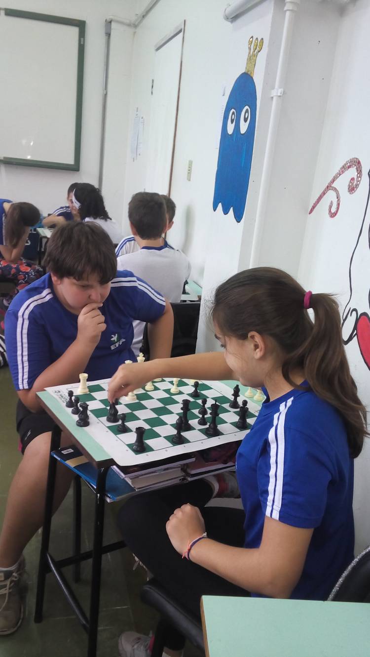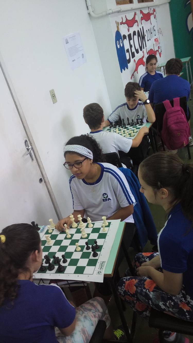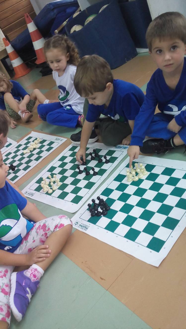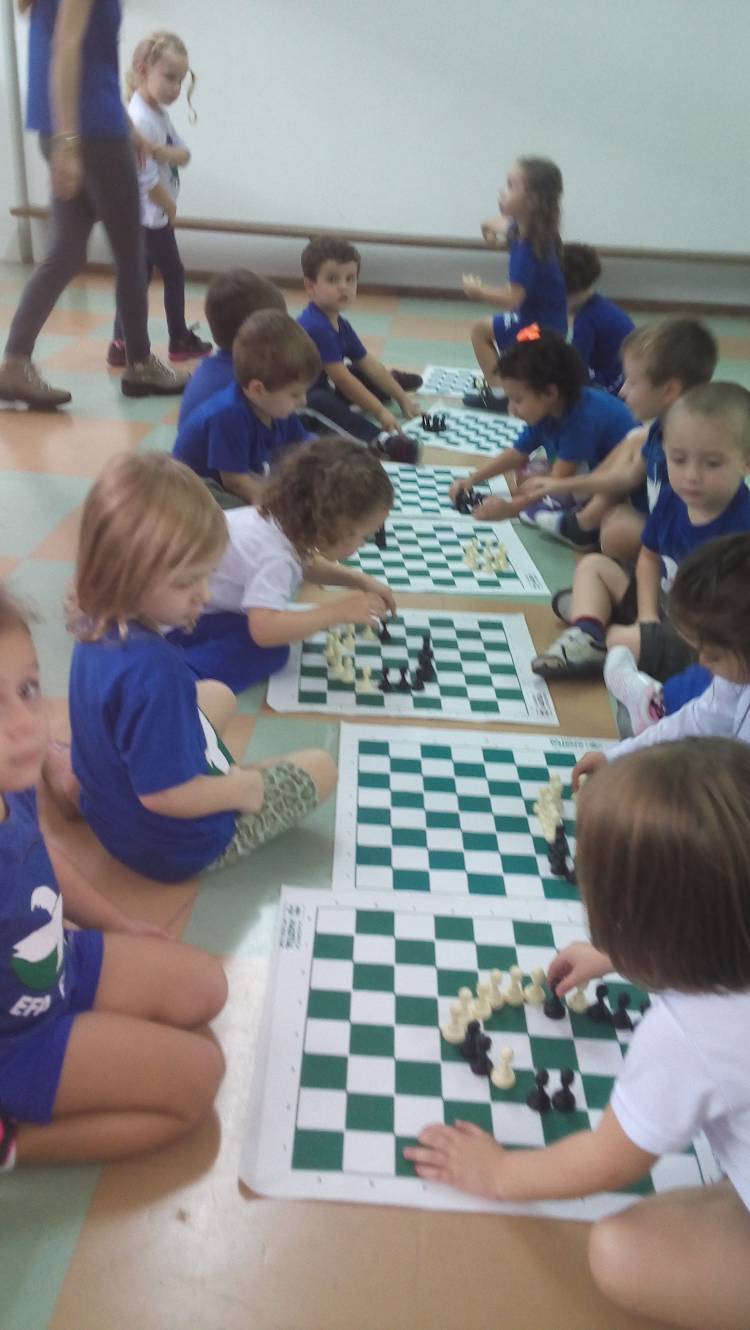 O Centro de Educação Básica Francisco de Assis /EFA tem como característica oportunizar os mais diversos tipos de projetos e experiências nas aulas de Educação Física. A professora Silvana Marchioro vem desenvolvendo projeto especial de Xadrez com suas turmas. O xadrez é um jogo de muita estratégia, onde é trabalhada a lógica matemática, a concentração, atenção, disciplina, criatividade entre outras habilidades. As crianças desde os dois anos de idade já estão tendo as primeiras experiências com o jogo e nesta etapa escolar, elas conhecem as peças e a história da Rainha e do Rei no castelo, explorando a imaginação infantil. As crianças incorporam as peças e fazem num primeiro momento um “Xadrez humano”, assim, se vestem como os personagens do tabuleiro e realizam brincadeiras como movimento das peças em círculo, trenzinho, exploraram os espaços, para frente, para trás, deslocam se livremente pelos lados, na diagonal e então num primeiro momento a criança passa a se familiarizar com o universo do Xadrez. Já com as turmas dos anos Iniciais e finais, a professora entregou livreto com as regras e normas básicas de movimentos do jogo. Nesta possibilidade de aprendizagem lúdica ampliam-se conhecimentos e se adquire a linguagem do jogo, estimulando a autoestima, a competição saudável e o trabalho em equipe.