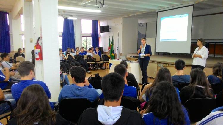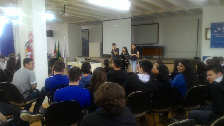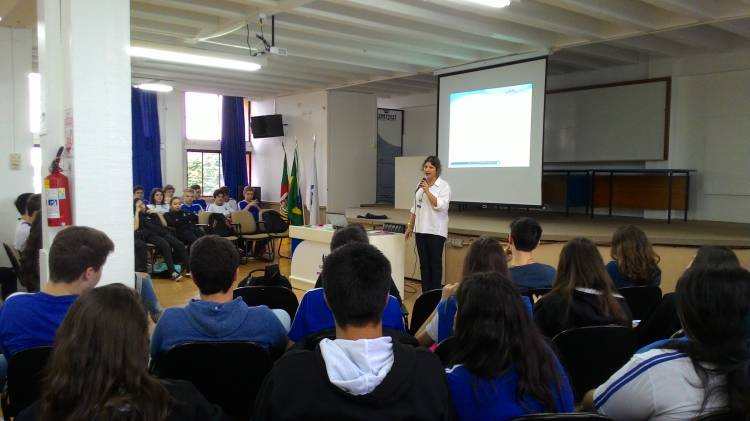Com a presença de todas as turmas do Ensino Médio no auditório da escola, a Diretora Rosane Nunes Becker em sua fala de abertura fez uma reflexão junto aos alunos relacionando a última etapa de escolaridade da educação básica, com a vida em toda sua trajetória, com o valor das escolhas que fazemos desde a mais tenra idade, da ousadia de correr riscos permanentemente, de se ter ganhos e perdas, de permitir-se desacomodar pelo movimento do pensamento, exercitado de forma divergente, coordenando pontos de vista e versões de fatos, como condição básica do exercício da cidadania.