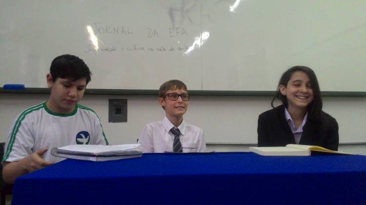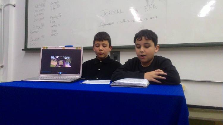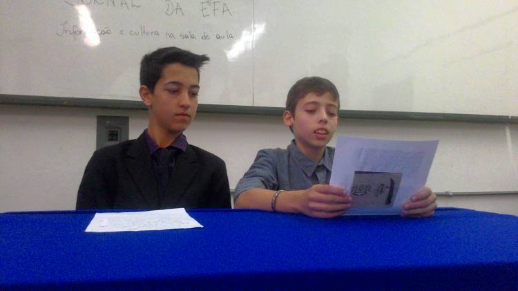 Em ano de Jornada Literária, todas as turmas continuam engajadas em projetos focados na pesquisa e nos estudos investigativos. O 7º ano do ensino fundamental do Centro de Educação Básica Francisco de Assis/EFA, nas aulas de Português estão estudando o gênero Jornalístico. Para esta atividade, coordenada pela professora Eliana Roig, os alunos escolheram noticiais impressos do estado e com elas, o trabalho do fazer um resumo e mantendo a construção do gênero, foram desafiados a reproduzirem as informações no formato televisivo. Um dos objetivos da atividade foi de dar continuidade aos estudos dos diversos gêneros textuais, objetivando o hábito pela leitura e contribuir na formação do aluno/sujeito formador de opinião.
