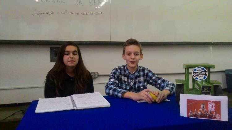 “Esta atividade além de despertar desejo de se informar e a construção em equipe, contempla de forma bem dinâmica a oralidade, desafiando nossos alunos a falar em público e romper barreiras que por vezes os impede de se expressar, conta a professora Eliana”.