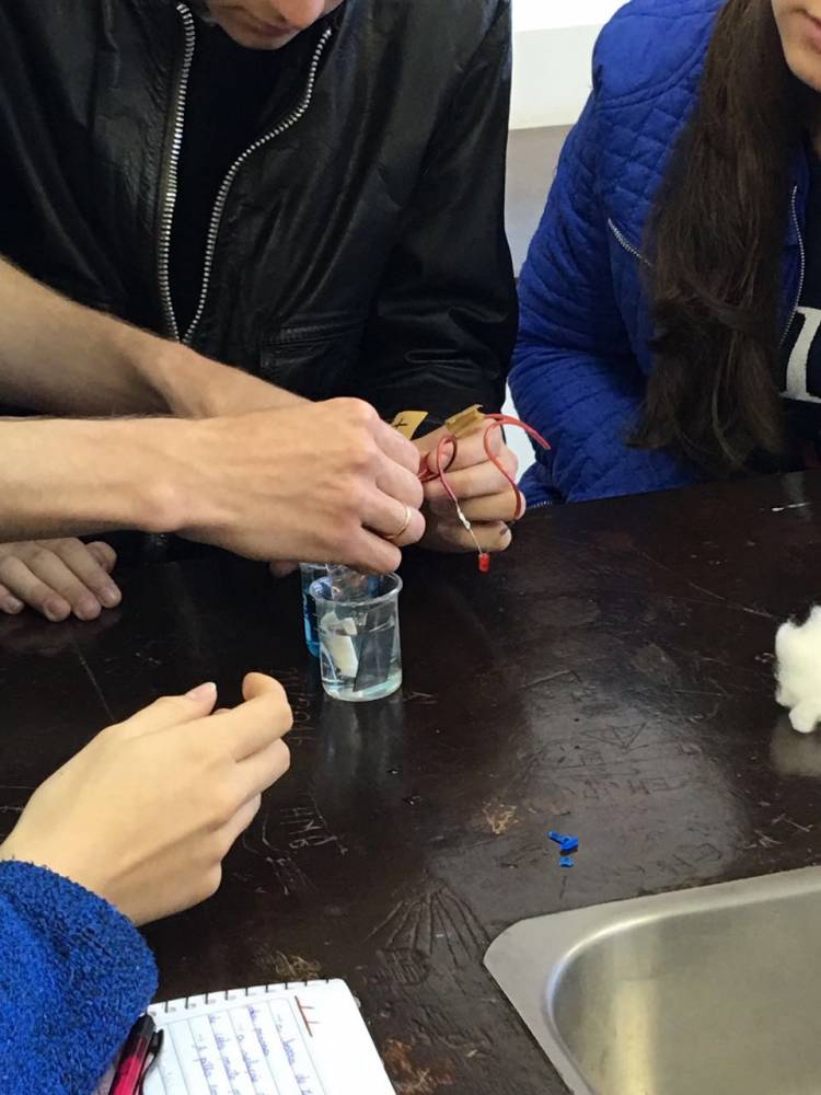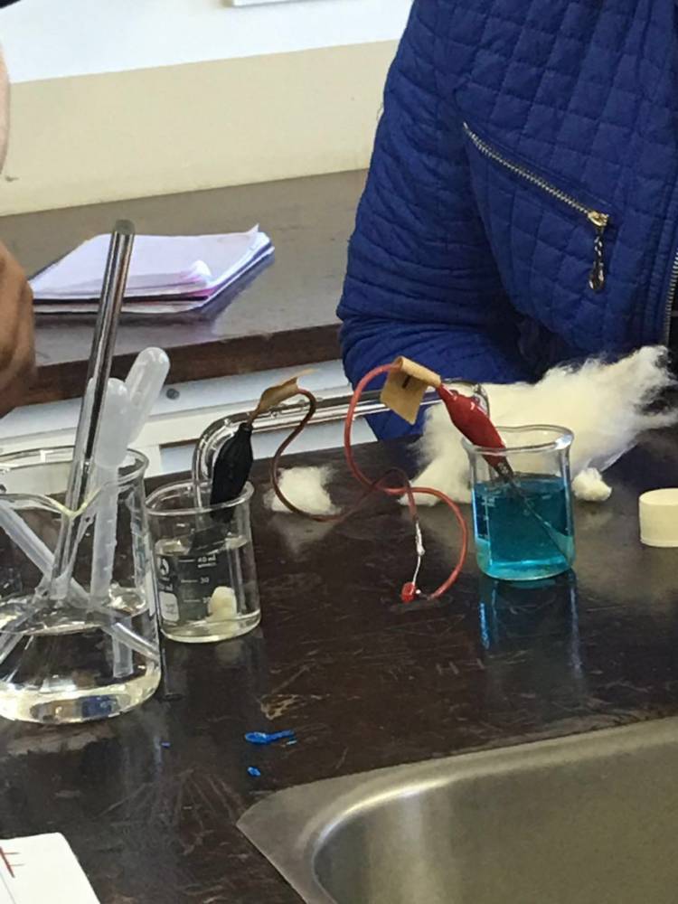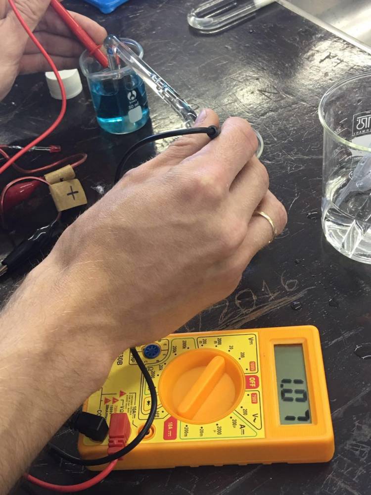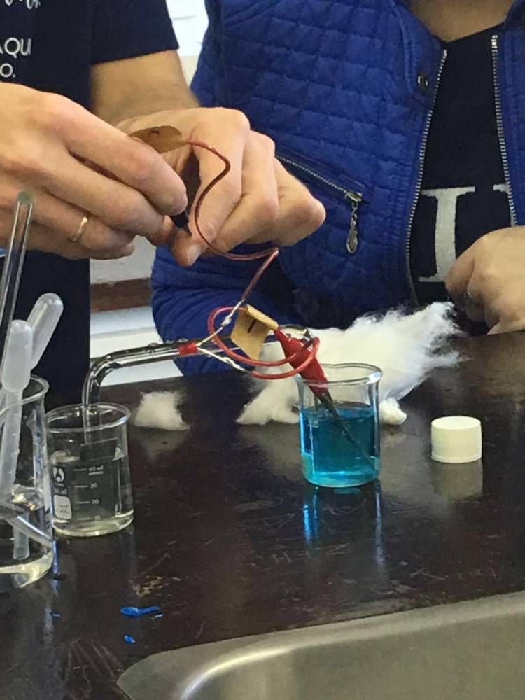 Segundo o professor, o desafio proposto para a turma foi reproduzir a Pilha de Daniell, a qual foi construída em 1836, numa época em que a expansão dos telégrafos com fio exigia fontes de corrente elétrica. “O experimento deu certo, pois, a lâmpada usada para testar a pilha acendeu, e isso se deu porque o conjunto de eletrodos, fios metálicos e a ponte salina forneceu as condições para a movimentação ordenada de cargas elétricas, originando uma corrente elétrica, finaliza o professor.