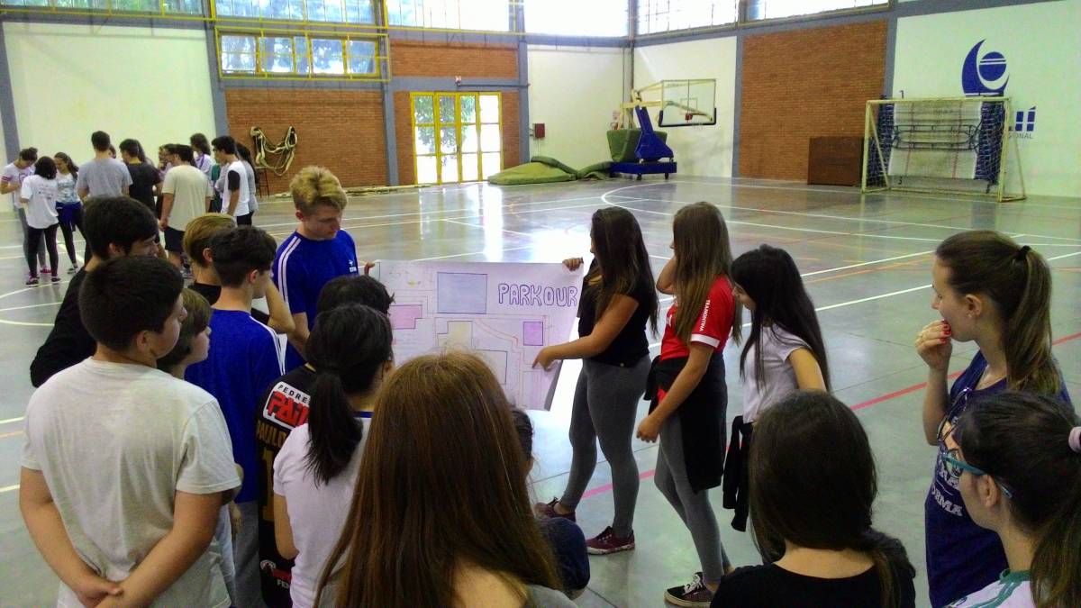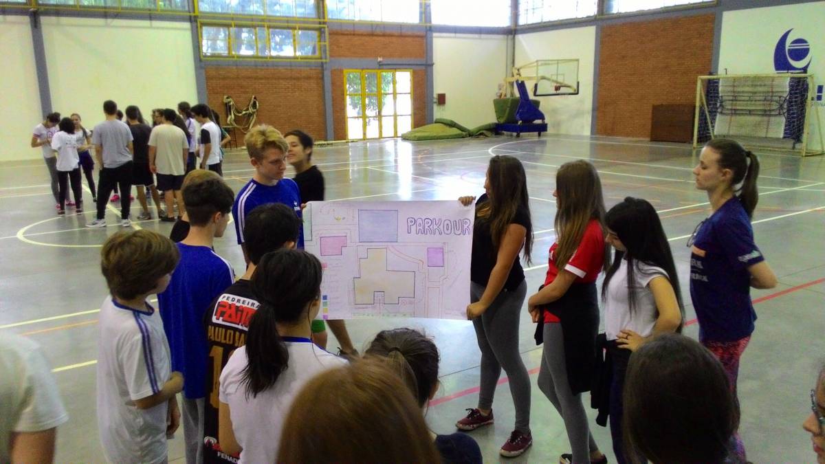Os alunos das turmas C81 e C91 do Centro de Educação Básica Francisco de Assis/EFA, realizaram um circuito de Le Parkour no entorno da Escola. O Le Parkour é a arte de deslocar-se de um ponto ao outro, usando técnicas de saltos, escaladas, corridas explorando apenas os recursos do corpo.