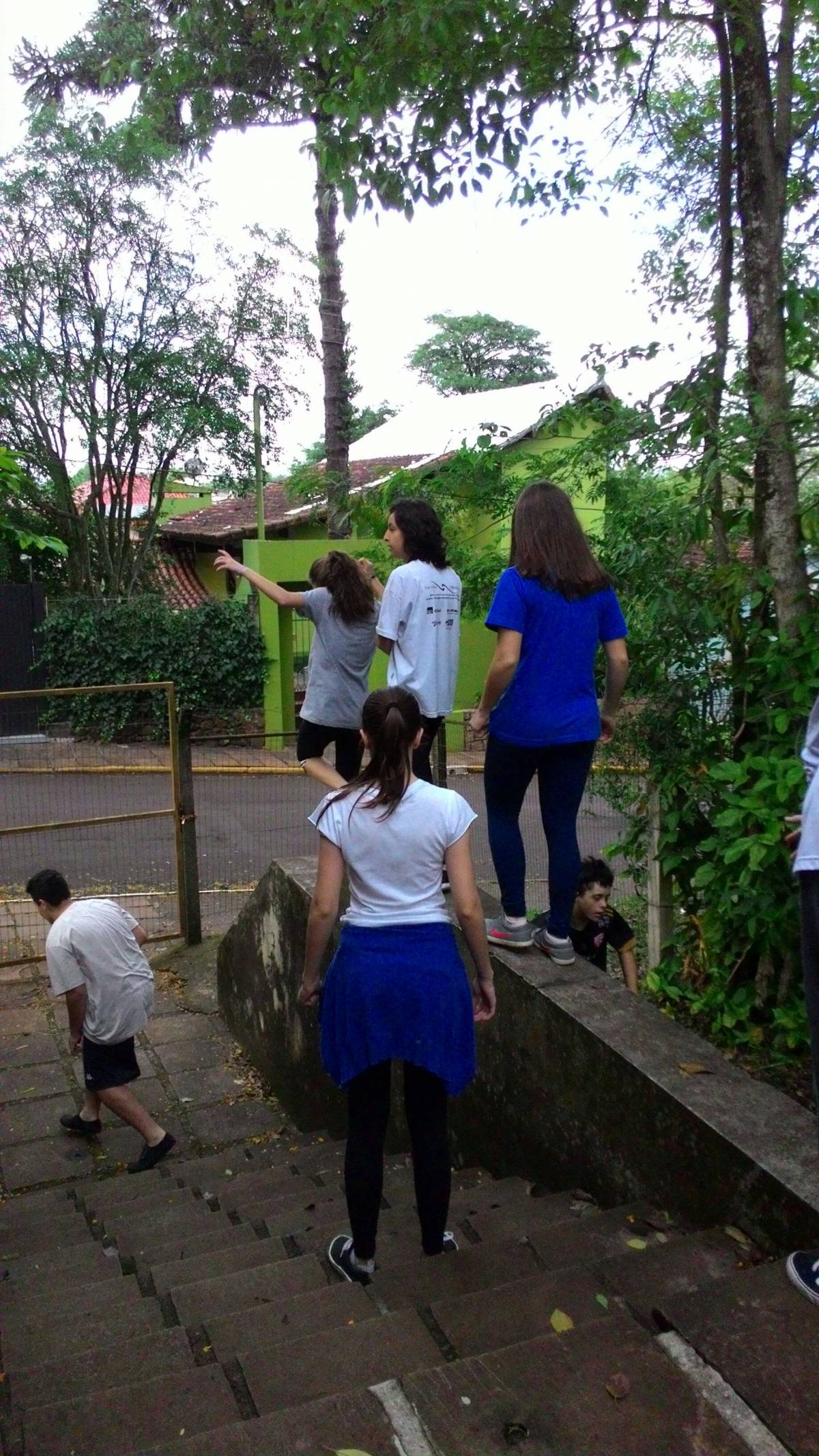 Segundo a professora Eduarda Virginia Burckardt, responsável pela atividade a turma C91 ficou encarregada de organizar e planejar um percurso, observando os diferentes ambientes disponíveis no entorno da Escola e que muitas vezes é esquecido. Já os alunos da turma C81 ficaram encarregados de conduzir o alongamento inicial e no final da prática.
