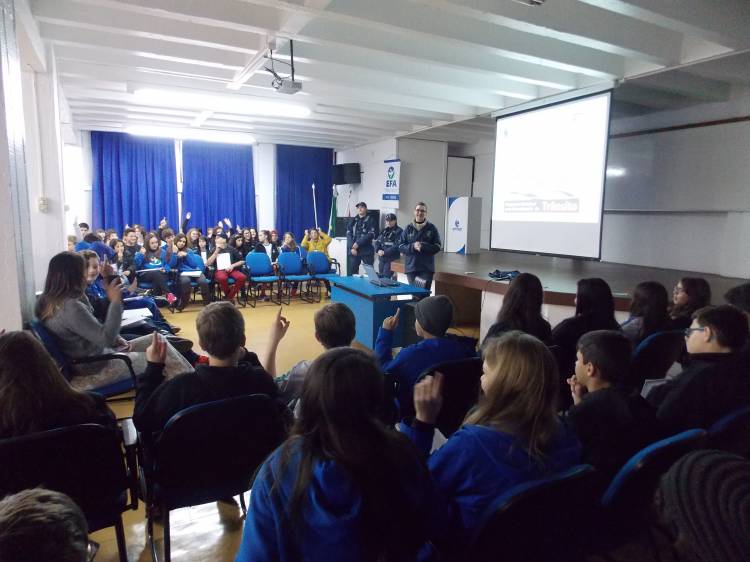 Em dois momentos distintos, alunos dos anos finais e ensino médio ouviram relatos, visualizaram dados e estatísticas da realidade do trânsito em Ijuí e no Brasil. Camila trouxe os índices de acidentes e vitimas que o trânsito faz, números estes que levaram à reflexão alunos e professores, uma vez que os estudantes serão os futuros condutores e terão como desafio reduzir estas estatísticas alarmantes e que também são pedestres e, portanto, têm bastante participação como transeuntes.