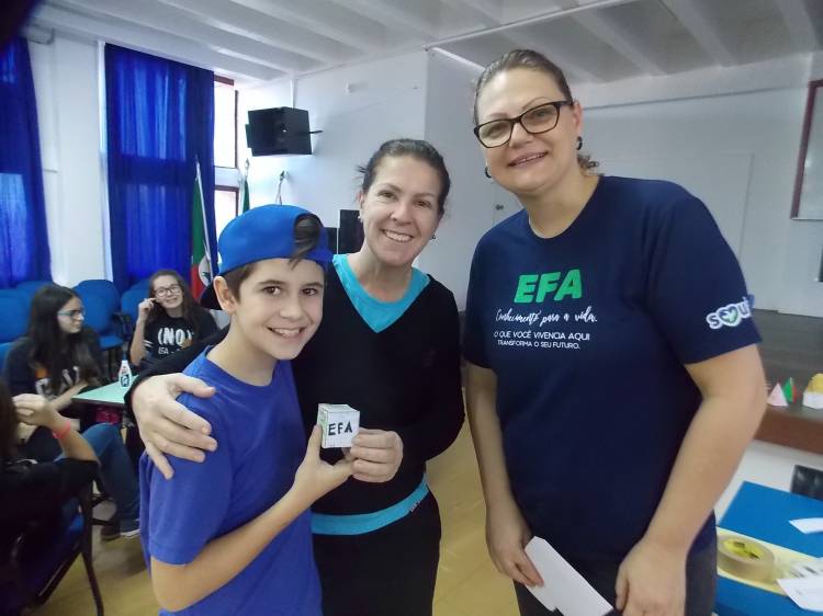 Durante as comemorações de aniversário dos 49 anos do Centro de Educação Básica Francisco de Assis-EFA, as turmas das séries finais do ensino fundamental participaram de Oficinas de Matemática, no auditório da Escola. A atividade foi organizada pelas professoras da disciplina na Escola, Carla Adriana Frantz Dal Molin e Maria Elisa Lucchese Moraes.