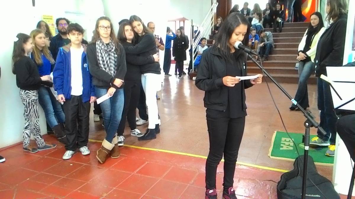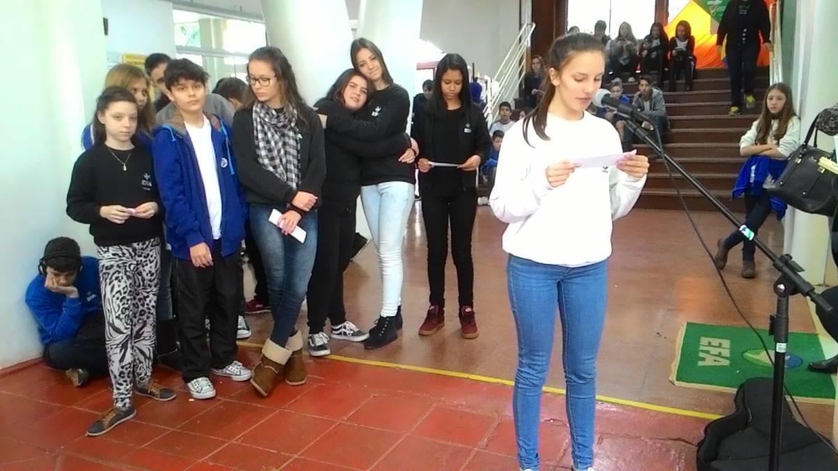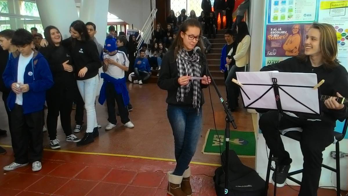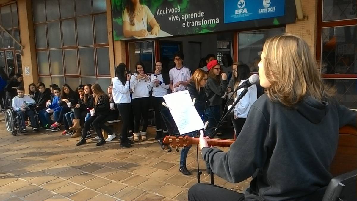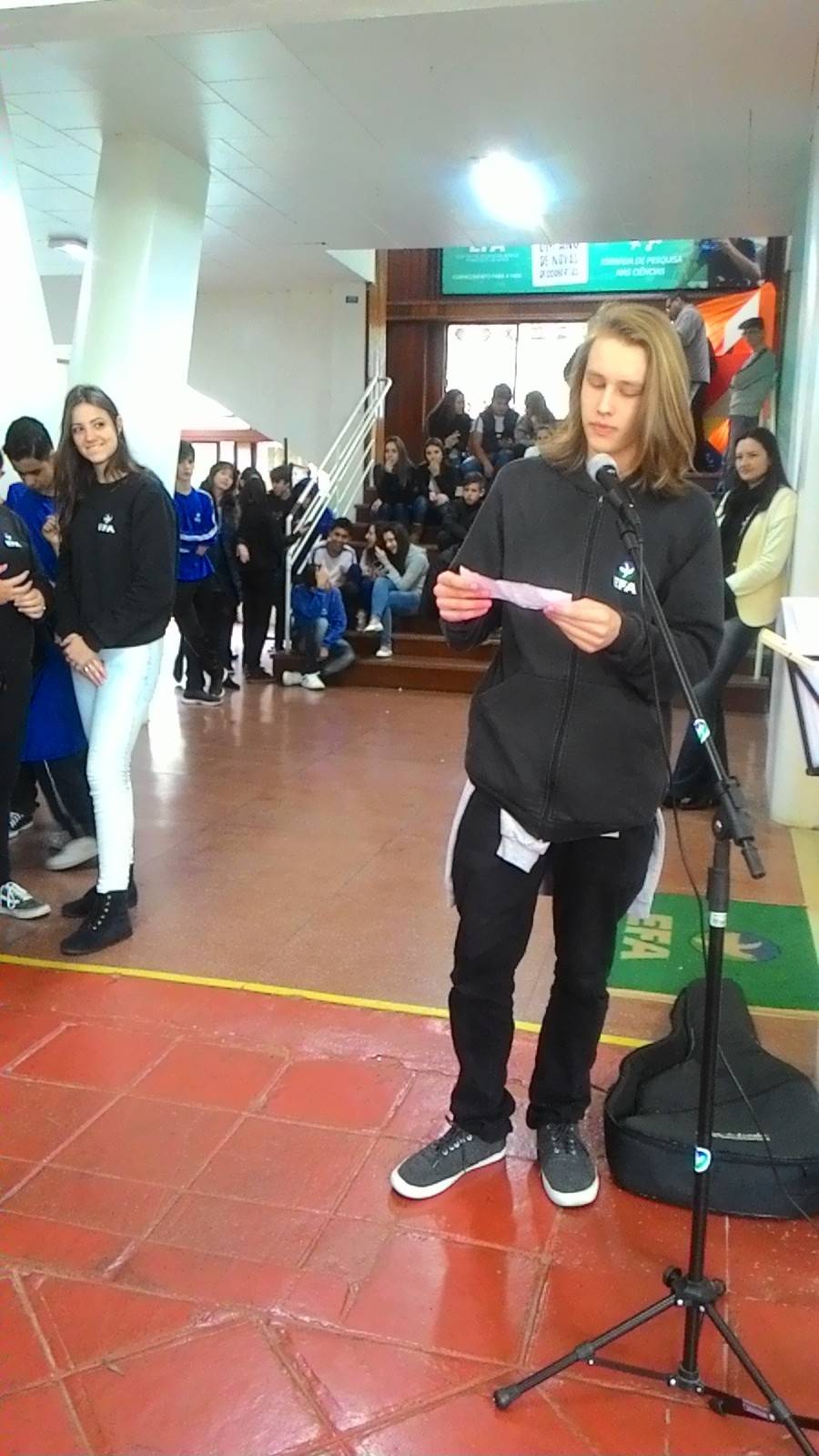 A música ficou por conta do aluno da EFA, Alex Vogt Schmidt, já a organização e as pipocas a cargo do Grêmio Estudantil. A atividade foi finalizada com a leitura das reflexões feitas pelas turmas à cerca do tema “ser estudante”.