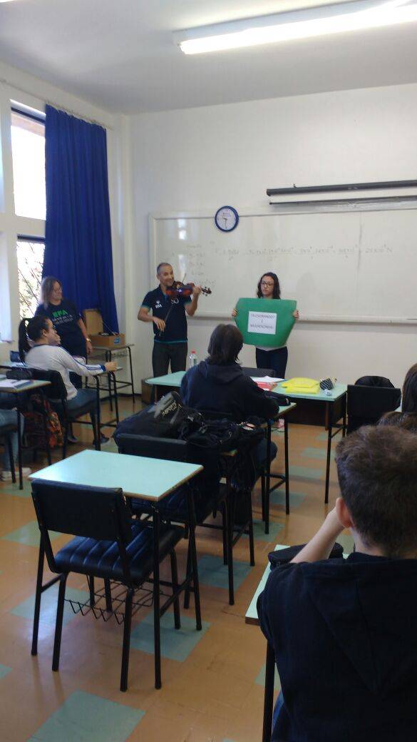 O dia destinado, mundialmente, à mulher raiou , na EFA, tal qual a manhã desta quinta-feira, 08 de março de 2018. Surpreendidos, nas salas de aula, pelo violino do professor Oséias e por um grupo de alunas expondo frases estereotipadas, as quais demarcam as desigualdades de gênero, alunos e alunas do sexto ao terceiro ano de ensino médio foram provocados a pensar sobre a conjuntura em que estão inseridos os homens e as mulheres.
