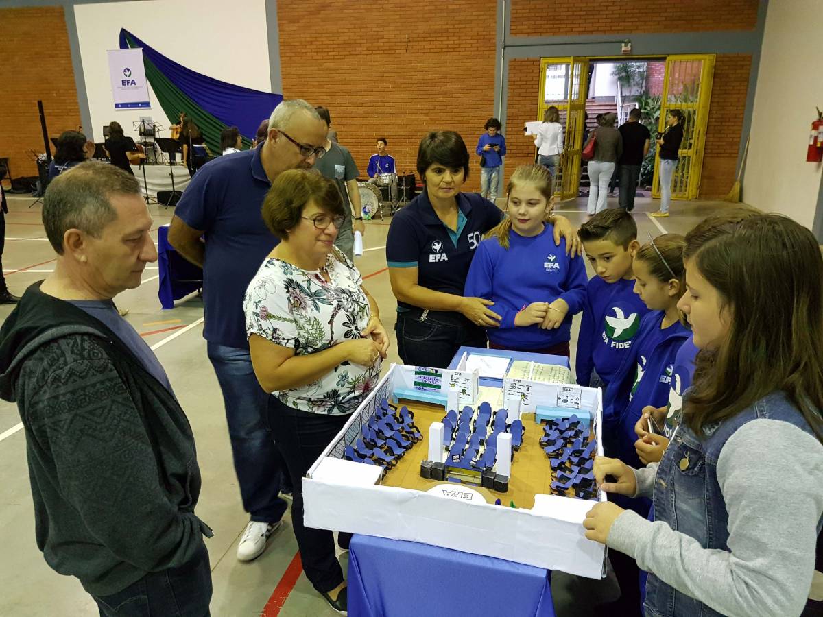A diretora da EFA, professora Maria do Carmo Pilissão avalia o evento como um momento singular de aprendizagem e envolvimento de toda a comunidade escolar, pois a Jornada de Pesquisa dos jubileu da EFA, lançada com a materialização dos espaços escolares foi riquíssima nos detalhes, em reconhecimento, sentimentos e emoções retratadas nas maquetes apresentadas pelas turmas, salientando a grande contribuição das famílias junto aos turmas de seus filhos.