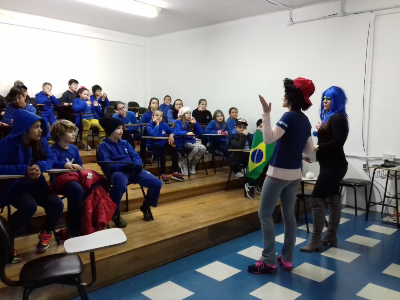 Com base na literatura infantil Pedro e Tina, as professoras Eduarda Virginia Burckardt e Vivian C. Belter Lunardi, trouxeram para o debate nas turmas B41 e B51 algumas provocações sobre a Copa do Mundo na Rússia.