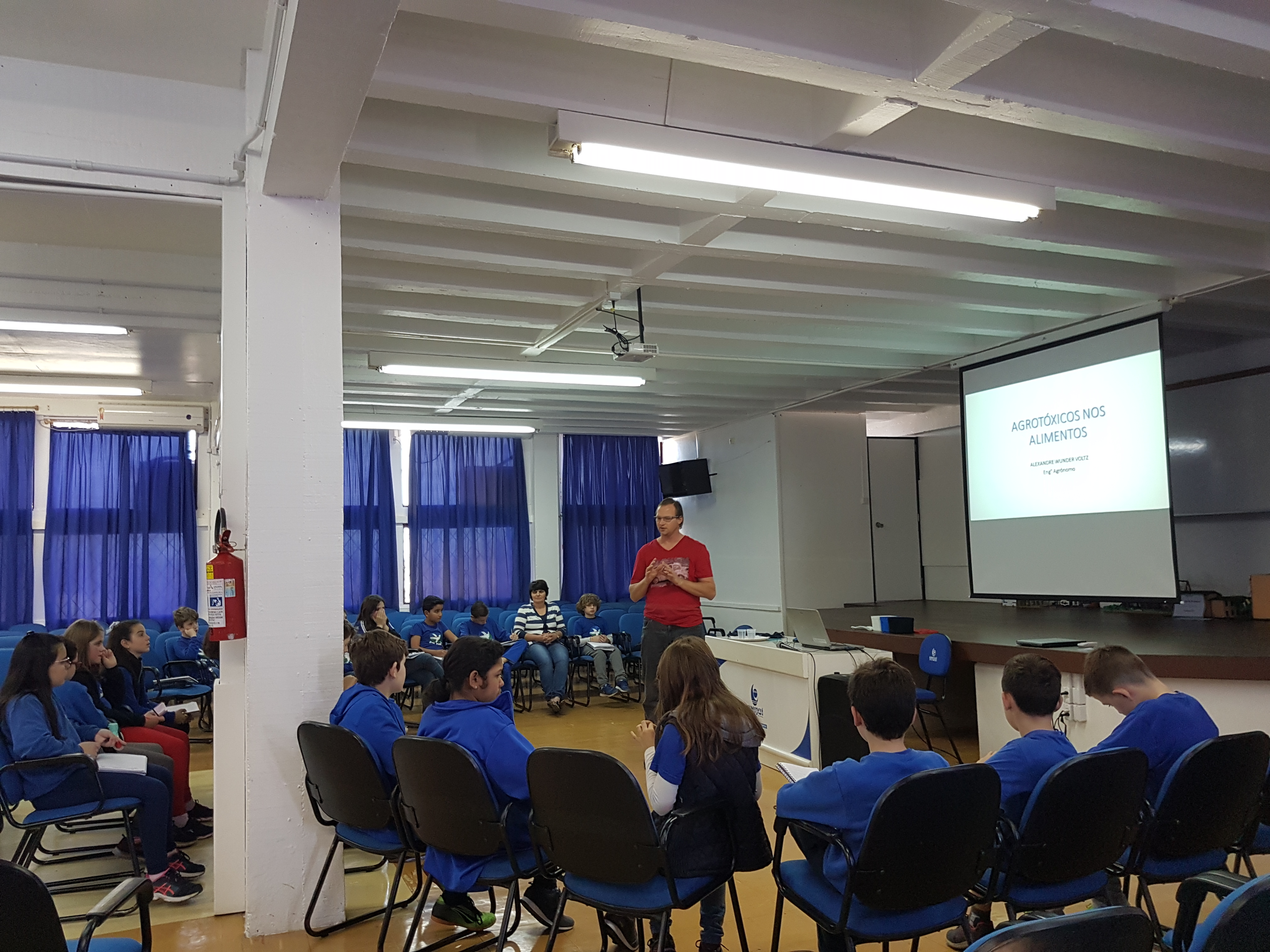 Na última sexta feira, 18/08, os estudantes do quinto ano da EFA, receberam o Agrônomo, Alexandre Voltz, pai da aluna Isabela, para uma conversa sobre Agrotóxicos.