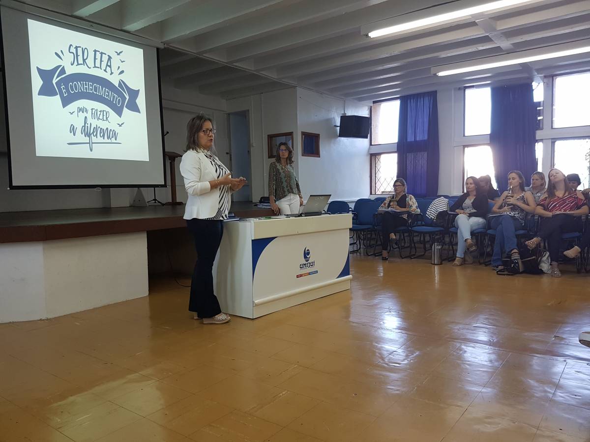 Na EFA a quarta feira, dia 13 de fevereiro, iniciou de forma lúdica e descontraída. Professores e funcionários da Escola foram recepcionados de forma calorosa pela Diretora Maria do Carmo Pilissão, vice-diretora Janete Maria Strieder e demais professoras que compõe a equipe com um café da manhã. Logo após, visando fortalecer o projeto educativo da EFA, deu-se início o Ciclo de Estudos 2019.