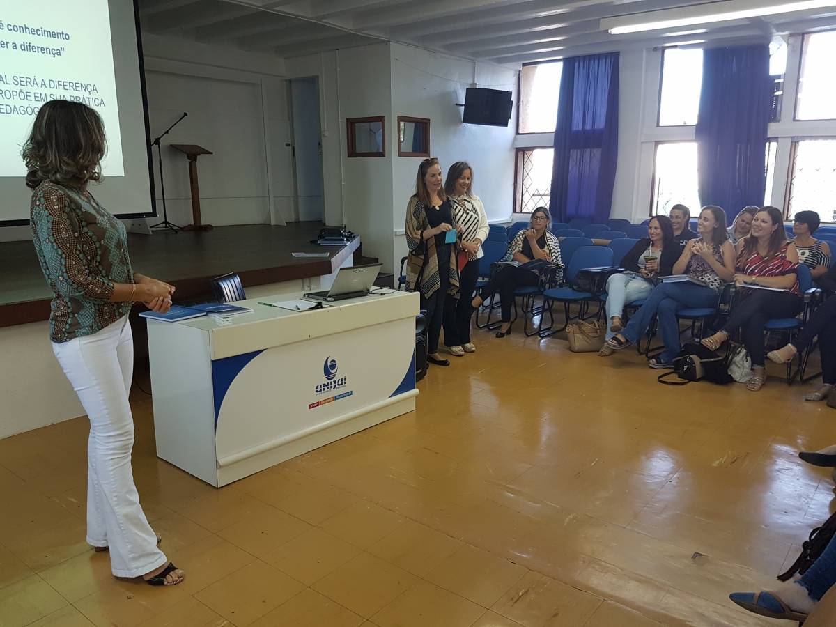 Marcou também o primeiro dia do ciclo, além das atividades de planejamento, a roda de conversa conduzida pela professora de Direito da Unijuí, Joice Nielsson, que abordou temas como a sensibilização, acolhimento e resolução de conflitos.