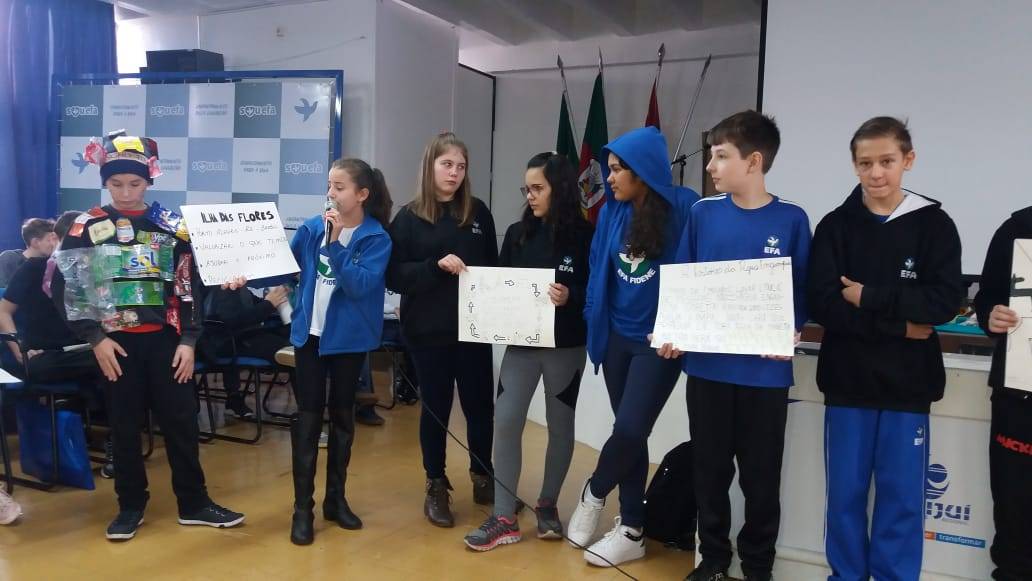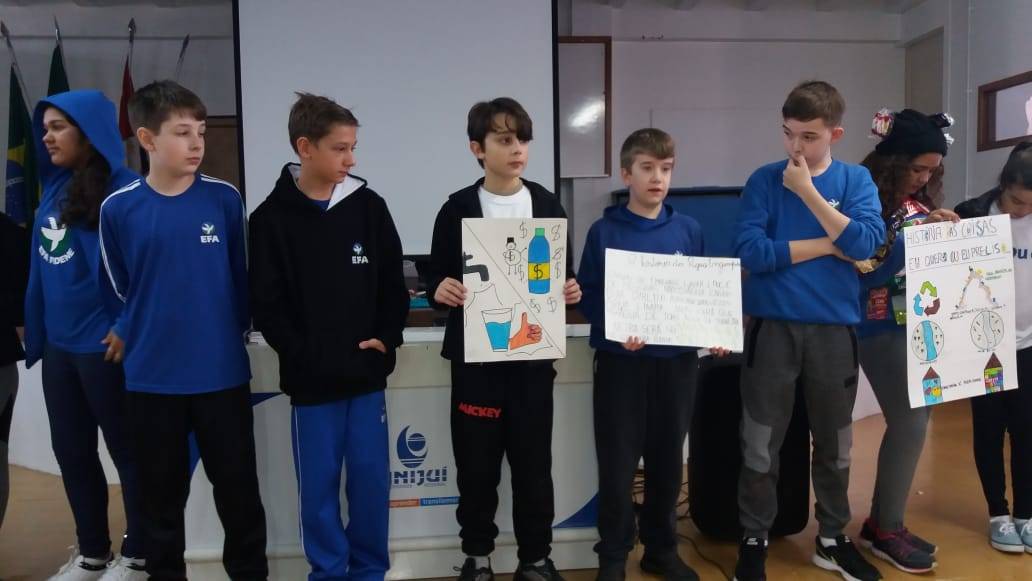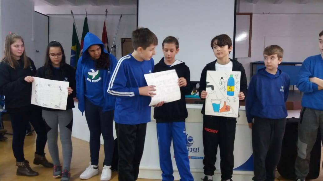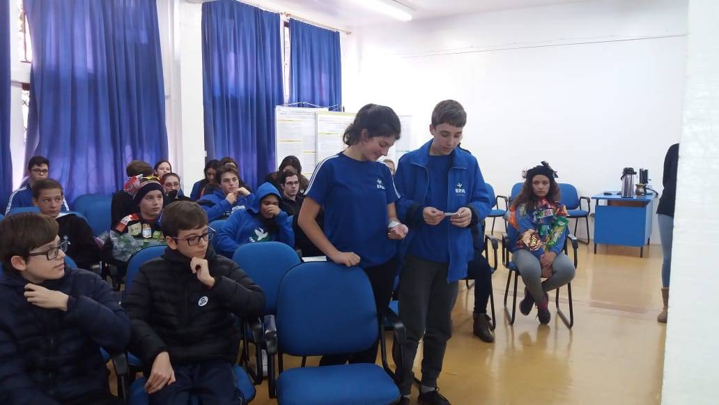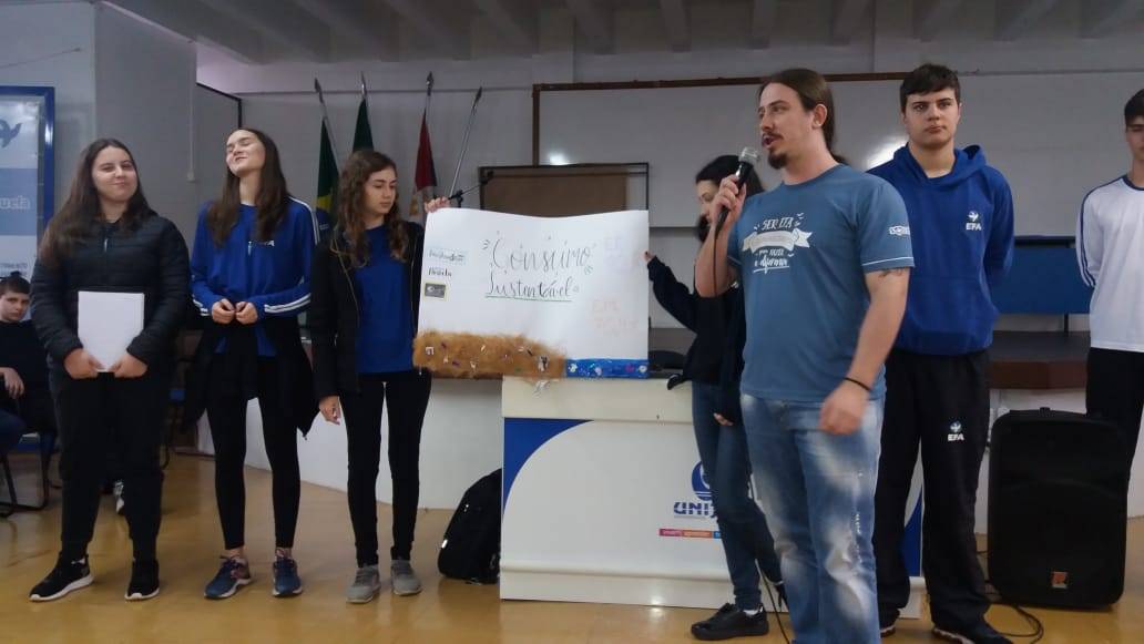 No último sábado,25/05, os professores de História e Sociologia da EFA, Gian Ruschel e Sandra Nunes Rosa, propuseram uma atividade diferenciada, visando a questão do consumismo e os problemas acarretados pelo mesmo fenômeno. Os alunos do Ensino Médio assistiriam ao documentário “Obsolescência Programada” e “O fazedor de montanhas. Já o Ensino Fundamental assistiu os documentários “História das coisas”, “História da água engarrafada” e “Ilha das Flores”. Ambos os ambientes tiveram um momento de reflexão prévia, para apresentar a ideia que seria trabalhada após os documentários.