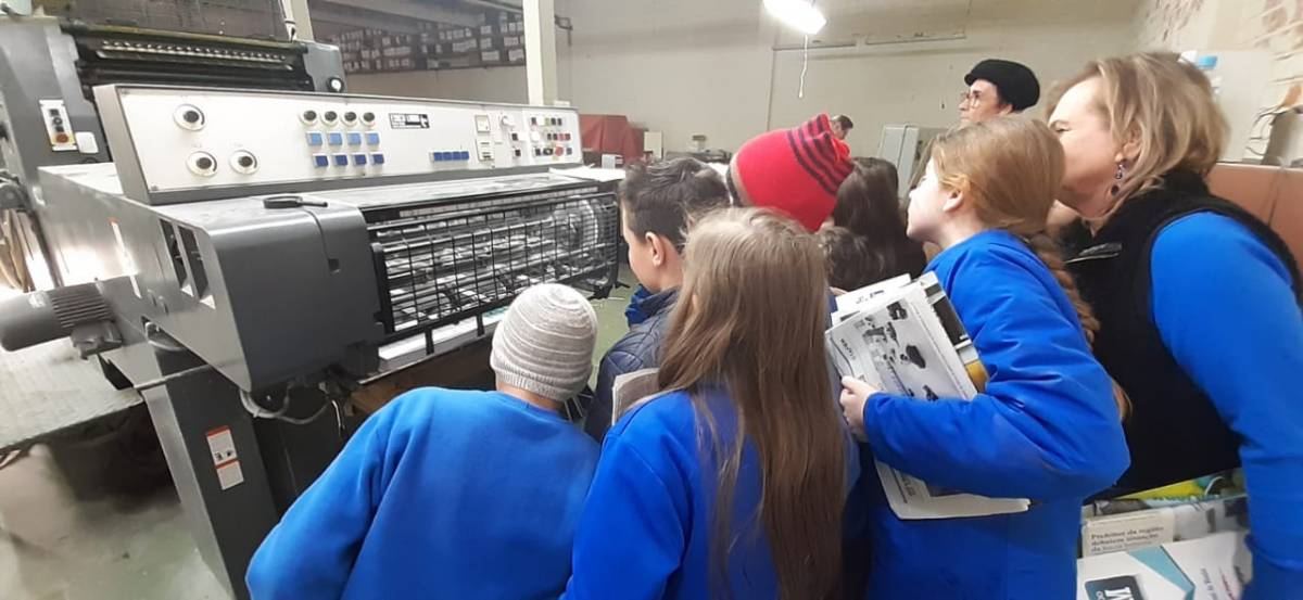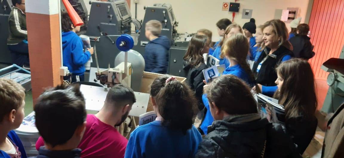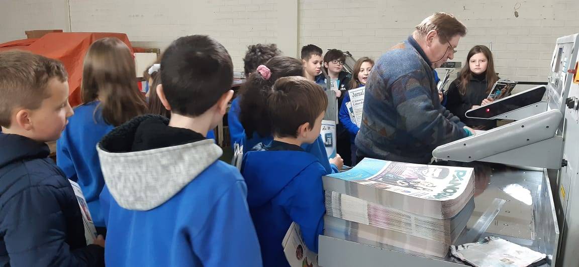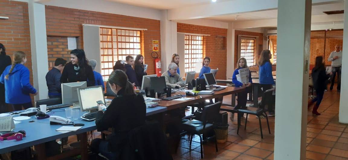 Para aprofundar esta etapa do trabalho, na última quarta feira, 18/08, a turma acompanhada pela professora Sonia Kinalski e pela auxiliar Laura Scherer, visitou as instalações do Jornal da Manhã, a fim de conhecer o funcionamento e a organização da redação de um jornal impresso.