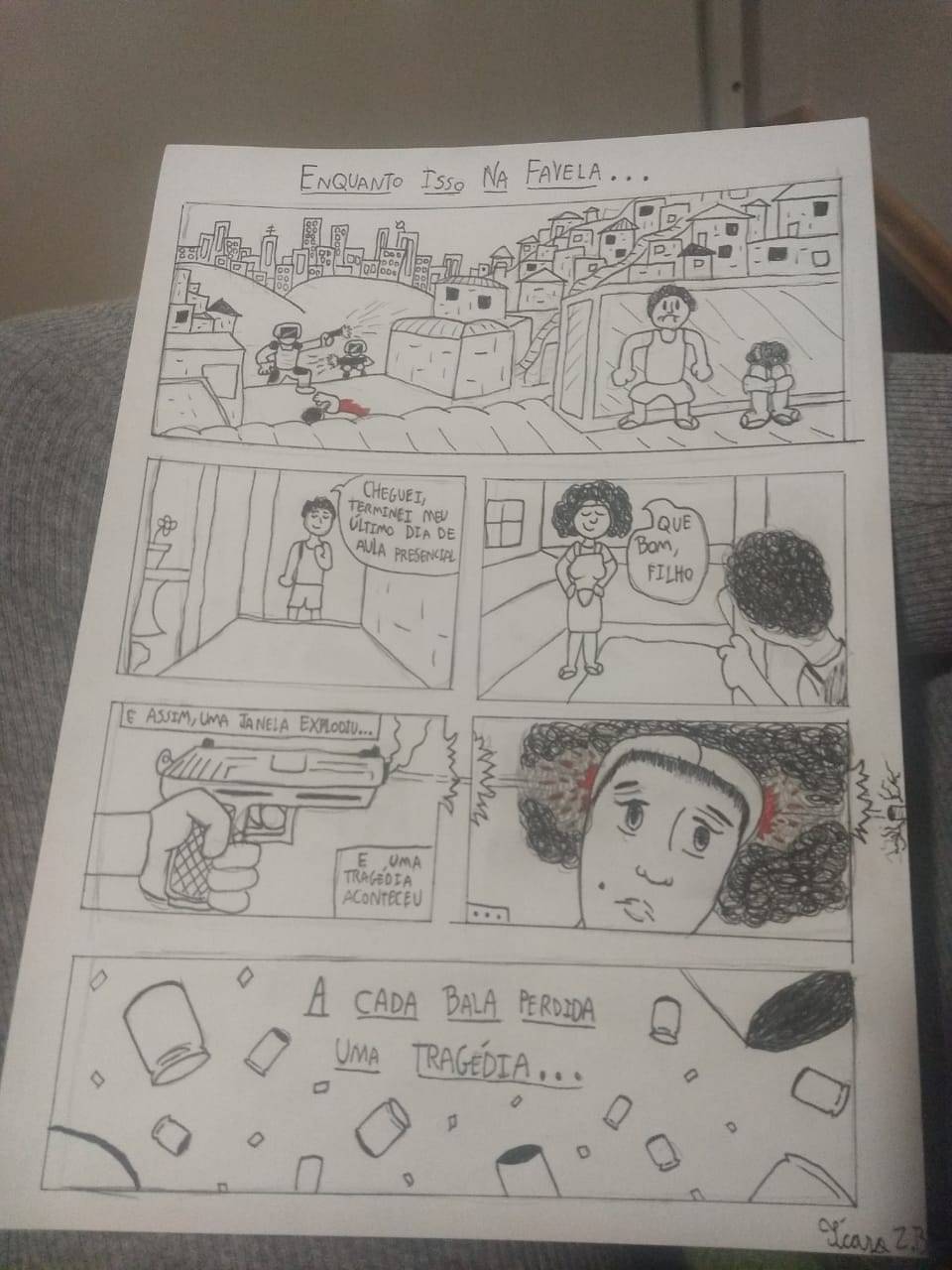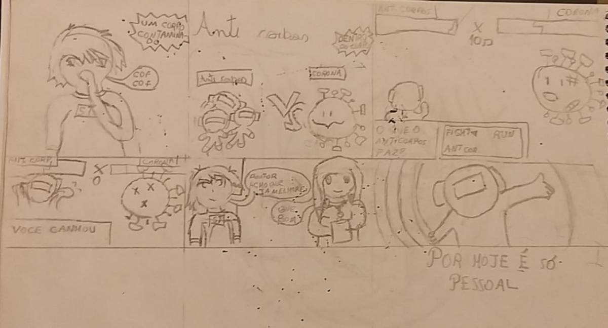 O professor explica, ainda, que a técnica artística empregada nas HQs não é algo recente. Os homens primitivos já utilizavam a arte sequencial nas relações sociais arquitetadas pela linguagem. Pesquisadores descobriram que o ato de rabiscar as paredes das cavernas não era uma brincadeira, mas uma necessidade vital de relevância educativa e histórica: os mais experientes precisavam ensinar aos mais novos sobre a caça e sobre os perigos que a selva oferecia, por exemplo. Ainda que tenha sido realizada com o uso de instrumentos rústicos, esse tipo de arte cumpria seu propósito comunicativo, revelando-nos que o letramento visual é tão antigo quanto às necessidades enunciativas do homem. Com a popularização da internet e de outras tecnologias, essas histórias em blocos receberam novos recursos e muito mais espaço para serem publicadas. O conteúdo, agora digital, ganhou interação com o usuário, movimento, cores, contextos, e até sons – algo impossível nos modelos tradicionais, estes, ainda, preferidos de alguns alunos da turma, os quais optaram em construir os seus próprios desenhos.