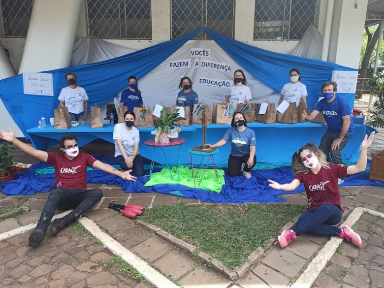 Na ocasião, foram convidados a passar no estacionamento da Escola para receber alguns mimos preparados pelos organizadores. Para alegrar a chegada dos colegas, a equipe do Cadagy se fez presente com intervenções.
