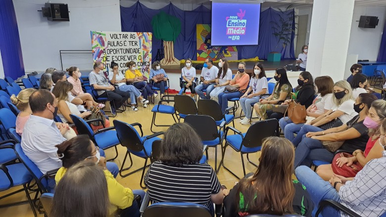 Na noite da última quarta-feira (16.03) aconteceu a primeira reunião de famílias das turmas do Ensino Médio, marcada pelo retorno dos encontros presenciais. Na ocasião, foram retomadas as regras gerais da EFA, apresentados os projetos de estudo, a Jornada de Pesquisa e os objetivos das viagens para o ano de 2022. Outro ponto de pauta foi a escolha dos pais conselheiros, momento importe que consolida a parceria entre Família e Escola.
