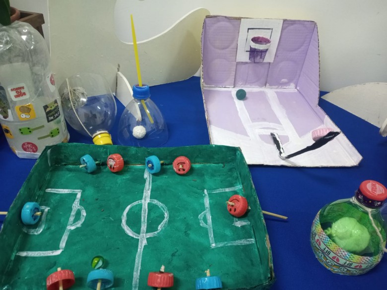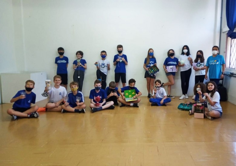 Em seus objetos de conhecimento alinhados a este primeiro trimestre, a turma C61 realizou um resgate dos jogos e brincadeiras nas aulas de Educação Física, com a professora Silvana dos Santos Prates Marchioro. Os estudantes foram desafiados a construir um brinquedo com materiais recicláveis de modo ousado e criativo, para brincar e jogar, criando possibilidades de interagir em diferentes espaços. Para além dos jogos e brincadeiras, o intuito desta atividade é também promover a conscientização ambiental e estimular a autonomia, instigando aspectos sociais e cognitivos, contribuindo em sua formação humana.