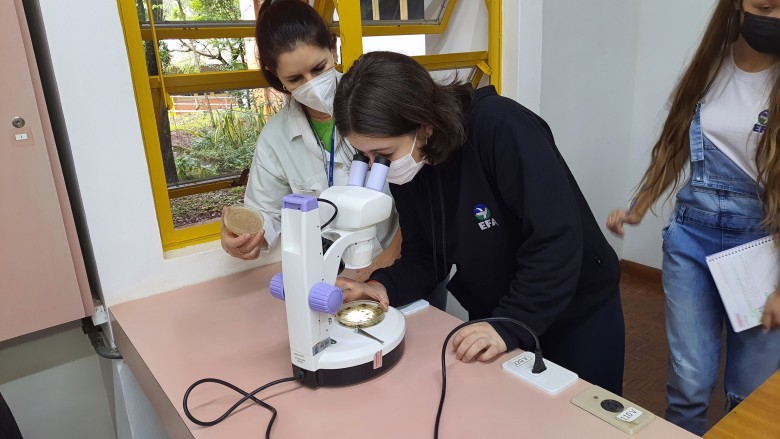 Com o objetivo de estudar o cultivo de fungos e bactérias a partir de observações em lupas e microscópios, os alunos da turma 211 do Centro de Educação Básica Francisco de Assis tiveram uma aula prática no Laboratório de Biologia Vegetal da UNIJUÍ, na tarde de segunda-feira, 11. Além disso, a turma também pode analisar as células vegetais, animais e protozoários, no qual os alunos prepararam em um primeiro momento no laboratório de química da EFA, diluindo caldo de galinha e gelatina em água fervendo e distribuindo em placas de petri em diferentes tempos.