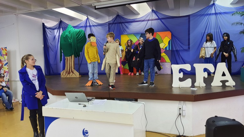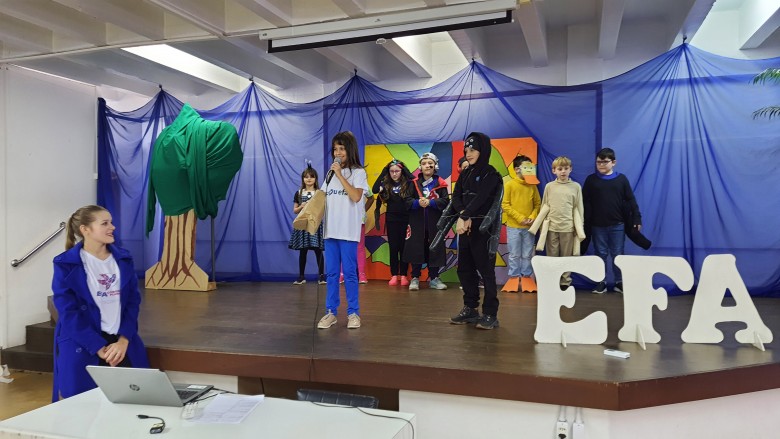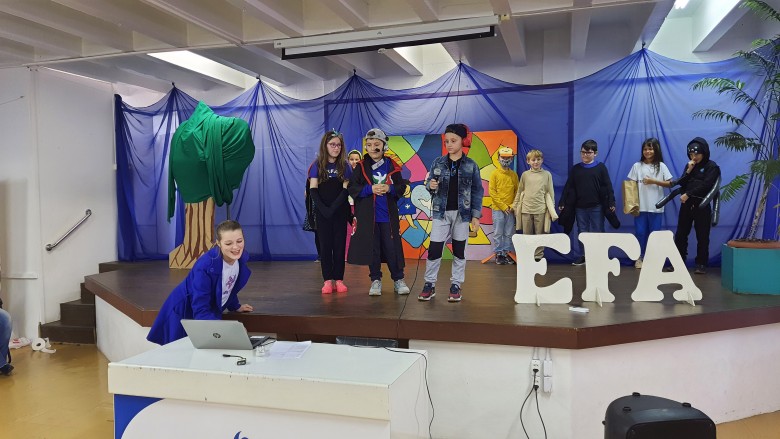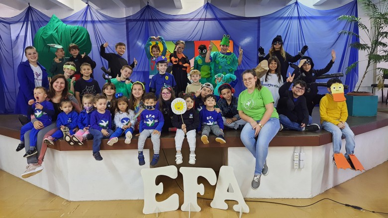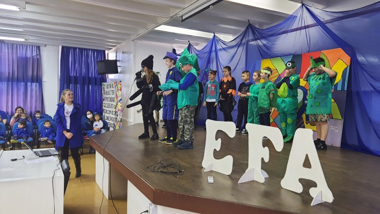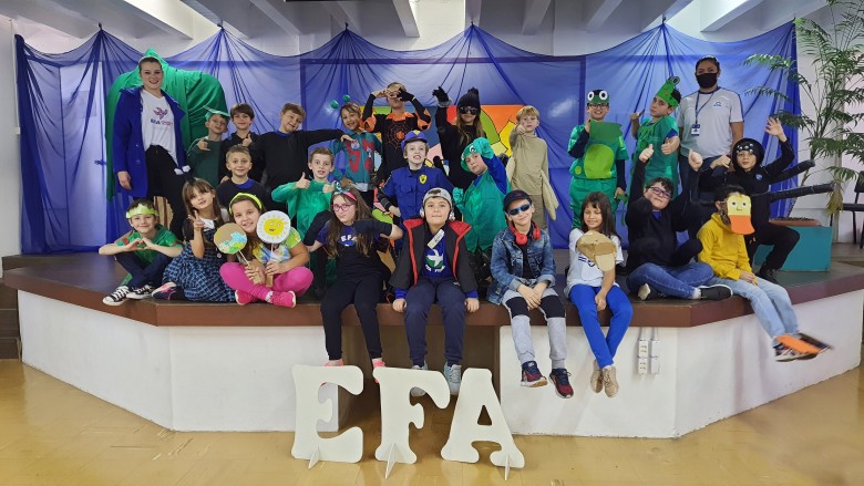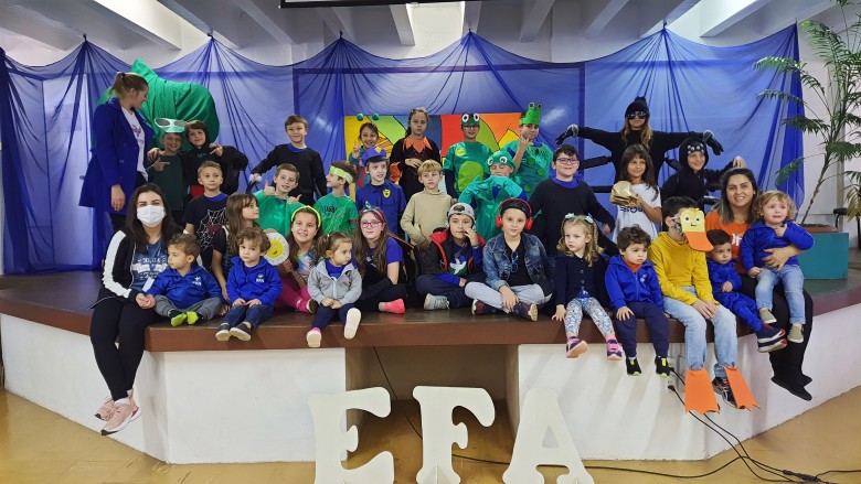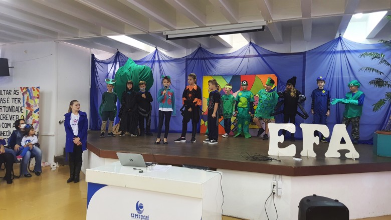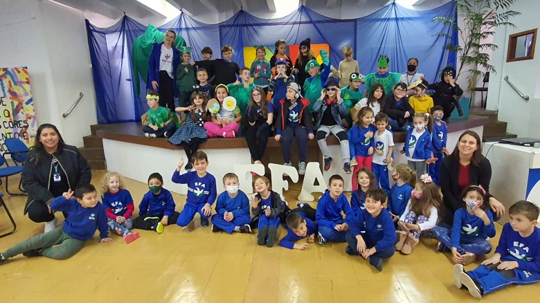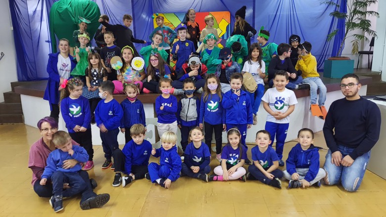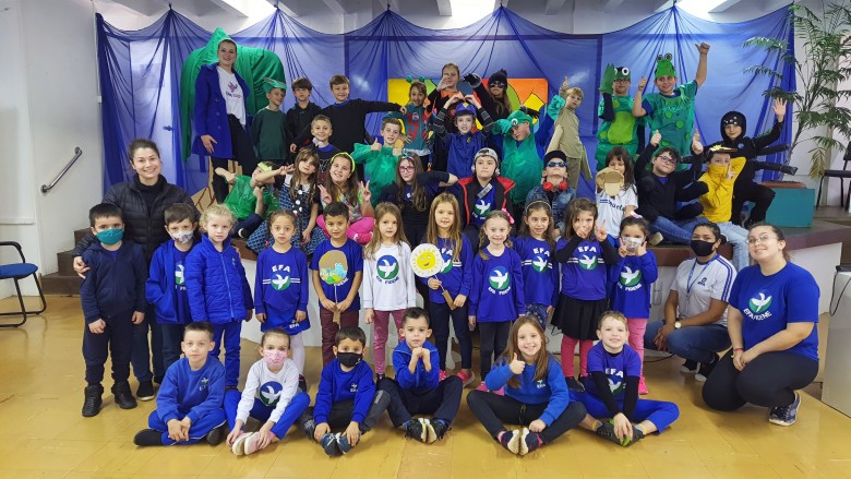 A proposta, desenvolvida durante as aulas pela professora Daniela Pristot Lausch, conta que “fazer essa dramatização foi bastante gratificante, envolvendo muito ensaio, estudos sobre pontuação, entonação de voz, padrão rítmico, desenvolvimento da postura de apresentação, criação dos figurinos com parceria das famílias, tendo diversos momentos marcados por autonomia, responsabilidade, envolvimento e aprendizagens”.