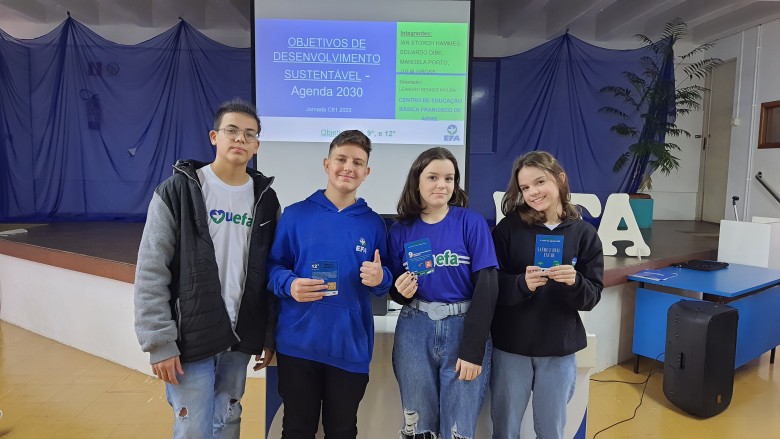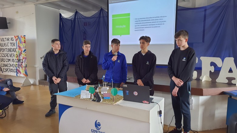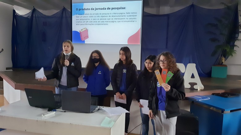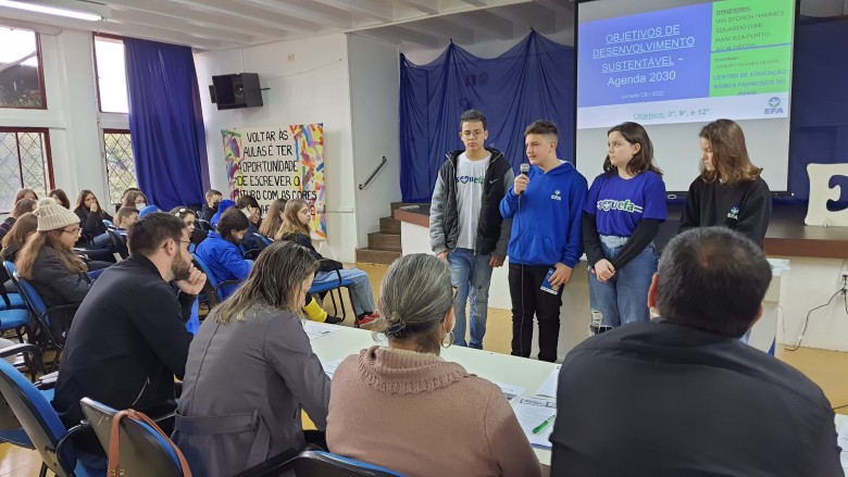 Ao longo desta semana, os alunos dos Anos Finais e Ensino Médio da EFA - Centro de Educação Básica Francisco de Assis, socializaram no auditório da sede suas pesquisas, iniciadas no primeiro semestre, tendo como objeto de estudos as Conexões Sustentáveis e suas metas globais. Sob a orientação dos professores, os alunos foram desafiados a pesquisar as ODS (Objetivos de Desenvolvimento Sustentável) elencadas para cada turma e pensar em um produto relacionado a sua temática.