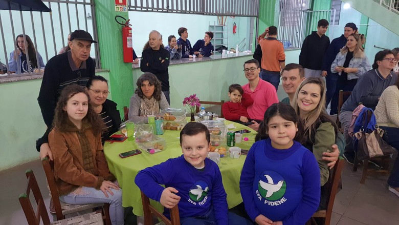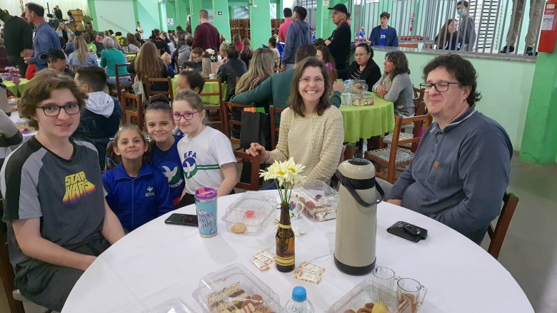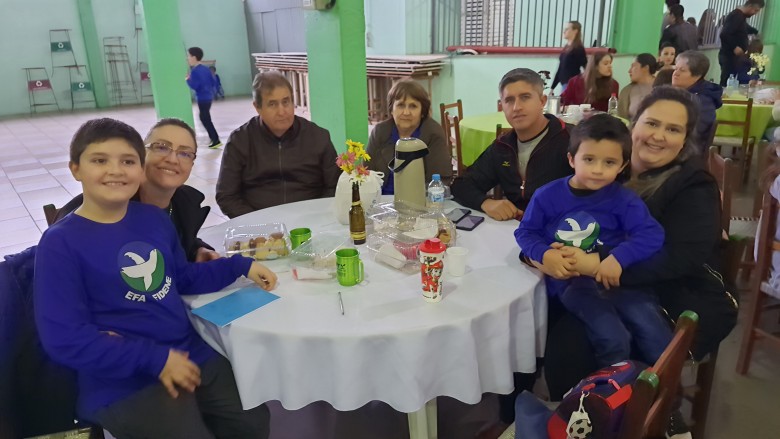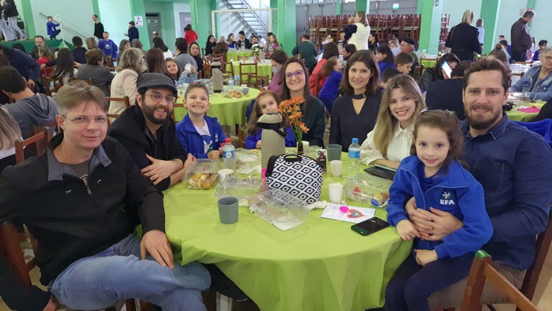 No último sábado à tarde (16.07), aconteceu o tradicional Chá EFAmília no Centro de Eventos São Geraldo. Esse ano o chá da família retornou em seu formato presencial, reunindo alunos, familiares, professores e funcionários da escola em uma tarde repleta de apresentações artísticas e culturais, apreciação de deliciosos quitutes, bem como confraternizar e celebrar a parceria e laços afetivos entre Família e Escola. O evento foi organizado pelo Conselho de Pais, com a colaboração da Equipe Diretiva e estudantes do terceiro ano do Ensino Médio.