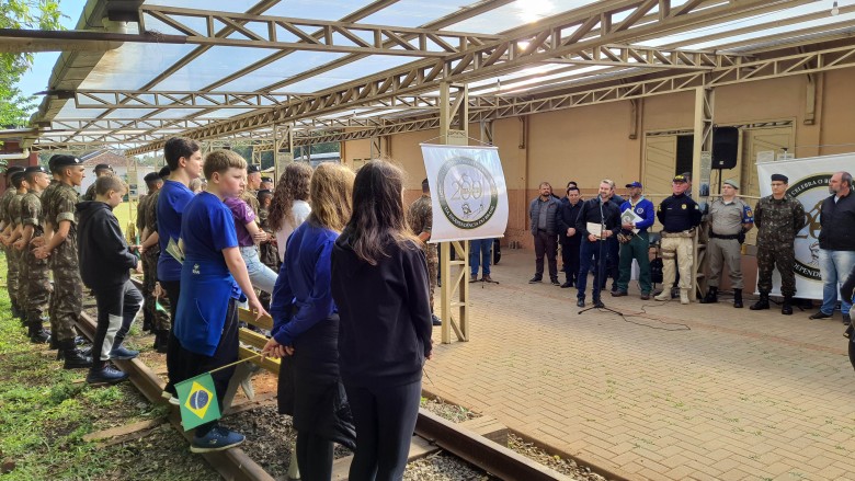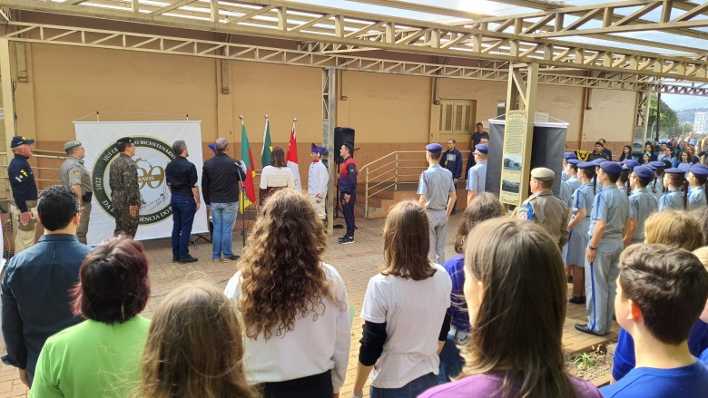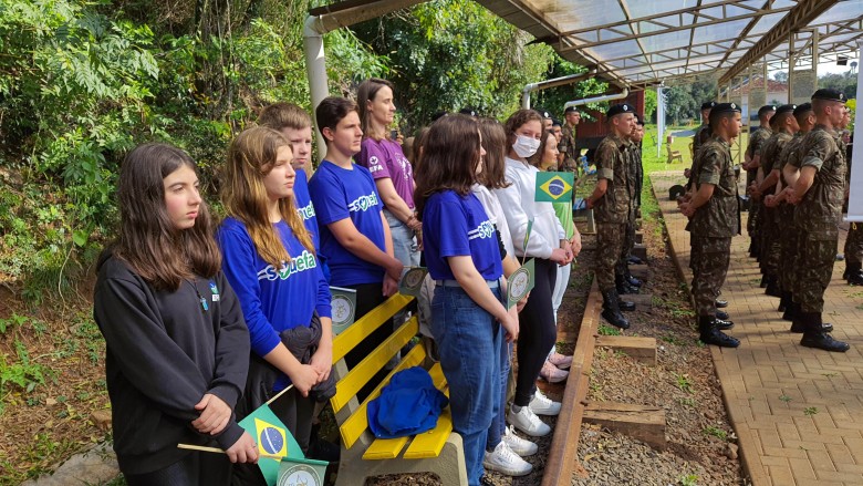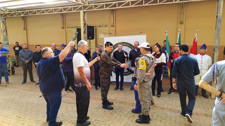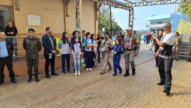 Na manhã desta segunda-feira (15.08), a EFA prestigiou a solenidade da chegada do Fogo Simbólico da Pátria. O evento ocorreu na Estação de Cultura e Lazer, com a presença de autoridades municipais, representantes de Educação, Exército, Polícia Rodoviária Federal e Estadual, Brigada Militar e do prefeito Andrei Cossetin. Após a cerimônia, o Fogo Simbólico foi conduzido ao quartel do 27º GAC, que ficará até o dia 1º de setembro, quando ocorre a abertura da Semana da Pátria, com o desfile cívico-militar previsto para o dia 7 de setembro.