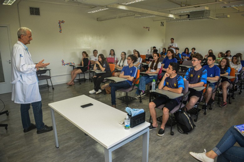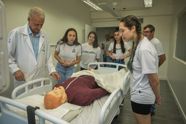 Os alunos do Novo Ensino Médio da EFA, dentro do Projeto Conexões, participaram na última quinta-feira, 27.10, de uma atividade no Complexo II da Unijuí, junto ao curso de Medicina com o Coordenador e Professor Jorge Brust. A vivência neste espaço foi para conhecer melhor o curso e suas possibilidades, sendo que na oportunidade, os estudantes viram os bonecos que são utilizados pelo curso para suas práticas diárias, através de uma demonstração junto ao enfermeiro que auxilia neste setor.