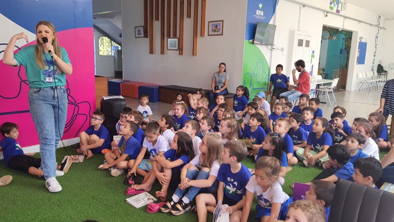 Na tarde desta segunda-feira, 03, aconteceu mais uma edição do Projeto Literário 3, 2, 1... É hora da história, com as turmas B11, B12, B21 e B22. Na ocasião, a professora Maiara Krupp Brendler contou a história O Ovo da Vida e após as crianças deixaram na árvore o seu ovo da vida, com palavras significativas como amor, amizade e esperança.