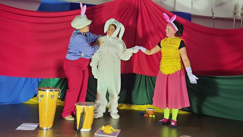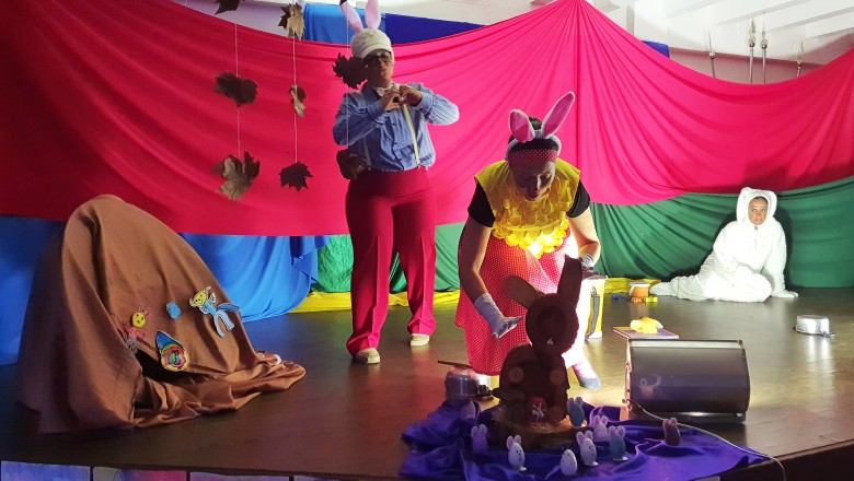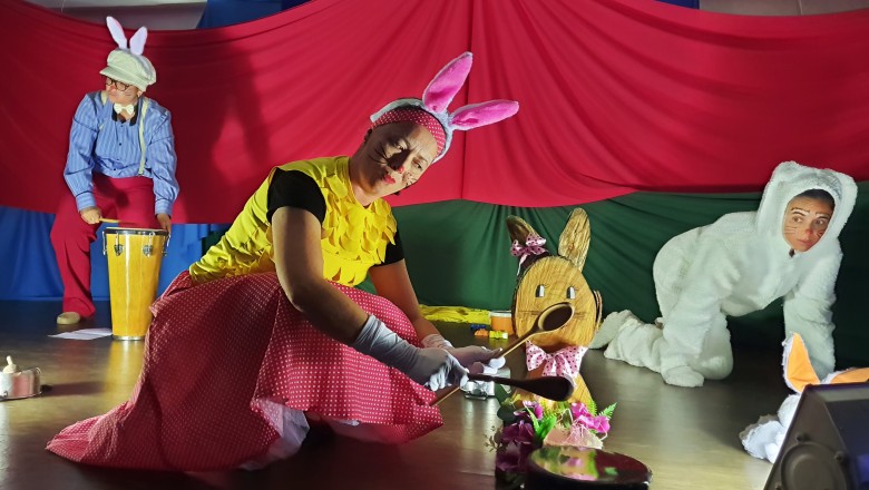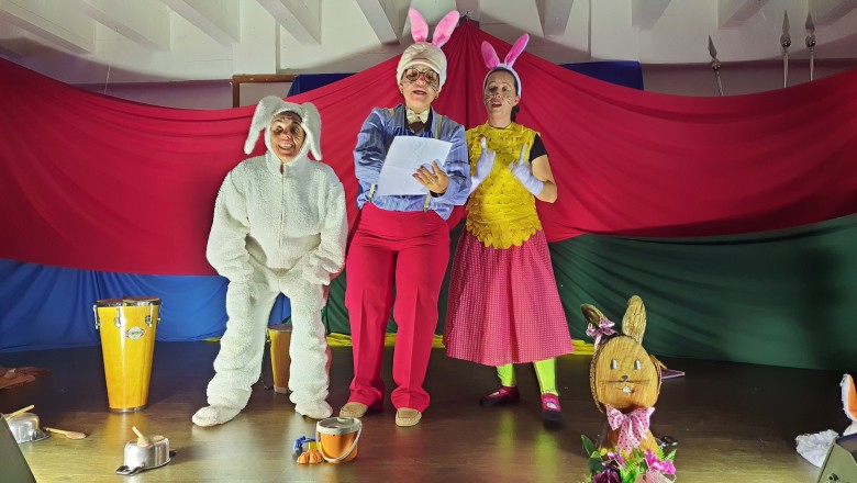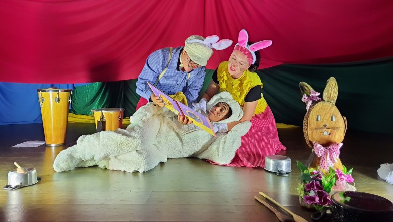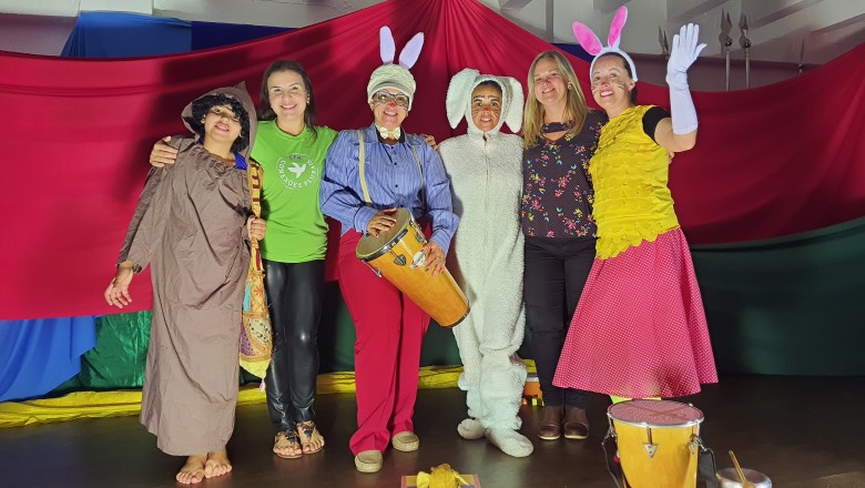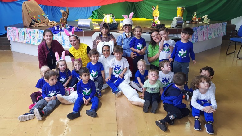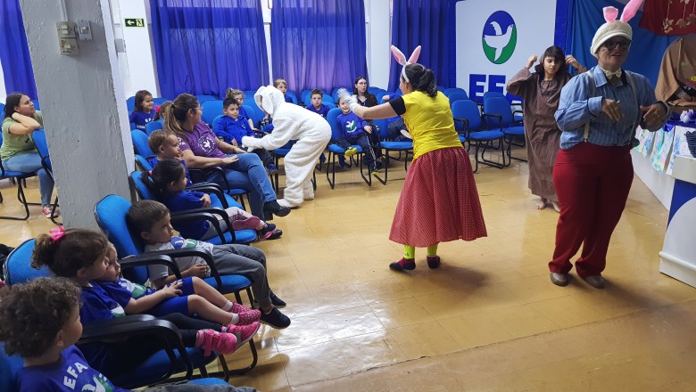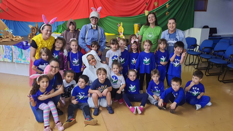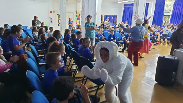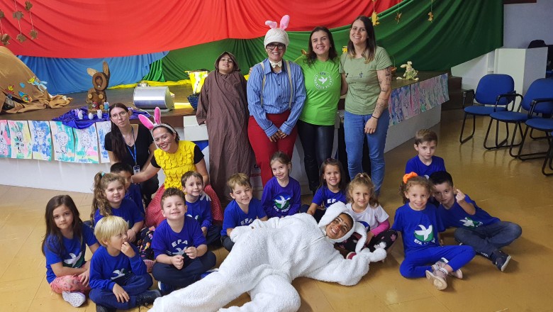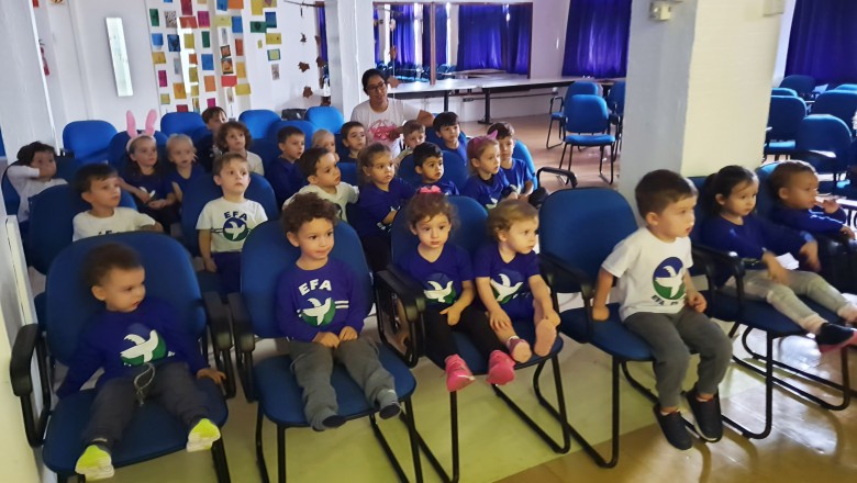 A EFA promoveu na última semana momentos culturais importantes para os estudantes, incentivando o hábito de leitura e socialização. Como proposta de expressão artística e movimento literário, as professoras Agnes, Janaína, Marina e Silvana representando os saberes complementares e com a participação especial do estudante do 6º ano Felipe Folck, apresentaram na última quinta-feira (07/04) o Espetáculo Teatral inspirado na literatura “Tambor do amor”. A história dialoga com os valores que a Páscoa promove, além da ludicidade e da interação com a arte, almejando mostrar o acolhimento e a inclusão de um coelhinho muito especial. “Acreditamos que as linguagens artísticas sensibilizam, humanizam e educam o público, promovendo cultura e conhecimento”, afirma a professora Janaina.