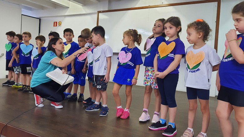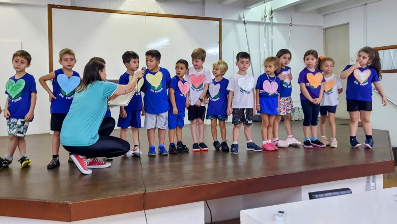 Na tarde desta terça-feira (11.04), teve início no auditório da EFA a oficina Leitura ao Pé do Ouvido, direcionada aos alunos da Educação Infantil, tendo como um de seus objetivos incentivar o interesse e o amor pela leitura. E na primeira edição foi a vez da turma A41 contar a história “Qual é a cor do Amor?”. A oficina acontecerá quinzenalmente com a participação das demais turmas de acordo com a agenda previamente organizada.