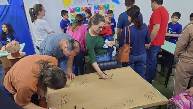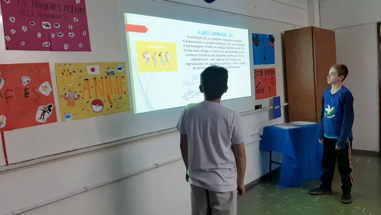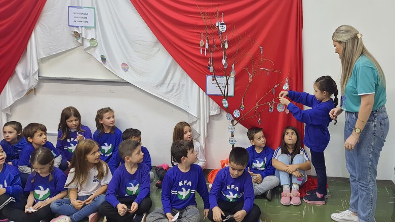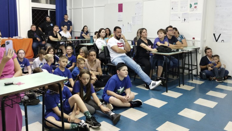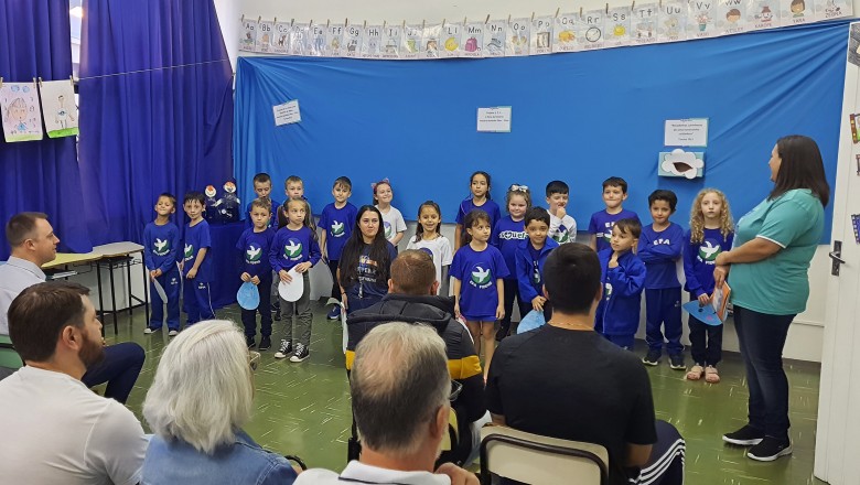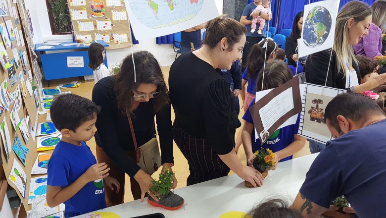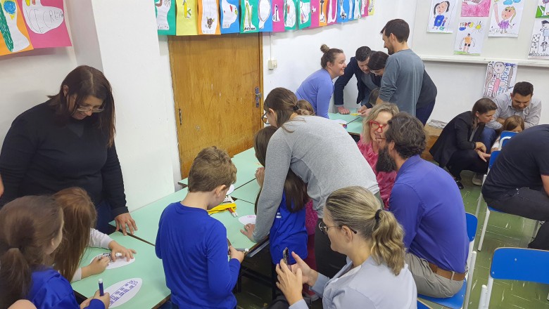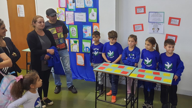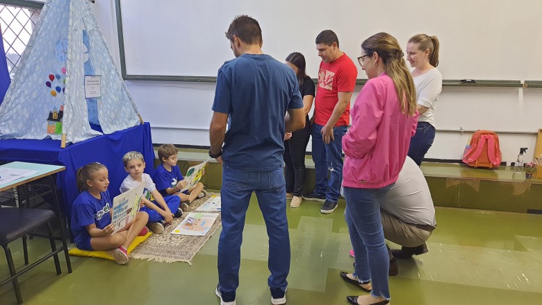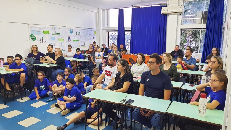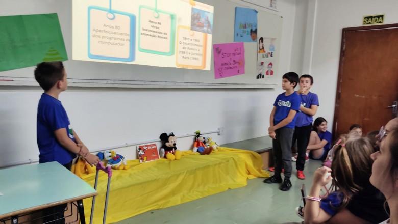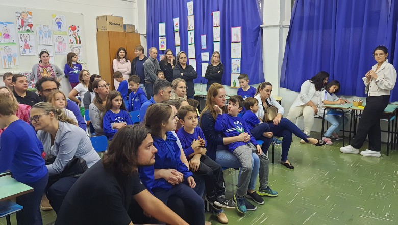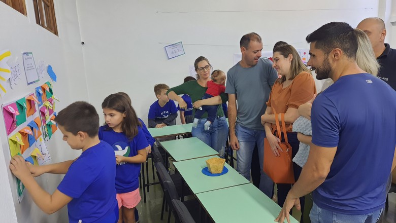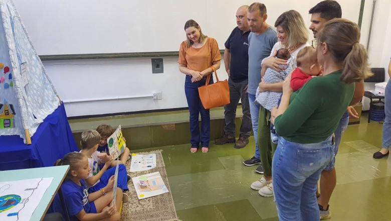A Turma B22 apresentou os estudos sobre o planeta Terra baseados no filme Wall-e, as questões ambientais, os quadros feitos a partir da visita ao museu e as pesquisas sobre as árvores observadas em casa, já a turma B11 socializou os estudos do projeto “Se eu fosse uma gotinha de água”, apresentou a história Plim Plim para as famílias, confeccionando gotas com dicas de economia de água. A turma B12 dramatizou para as famílias a história “O ovo da vida”, refletindo através da escrita significativa, palavras motivacionais para serem cultivadas durante o ano, além da apresentação das petecas produzidas nas aulas de Educação Física, e a turma B21 apresentou a dinâmica de rotação por estações, de acordo com os trabalhos confeccionados em sala de aula, como jogos matemáticos e diversos gêneros textuais. As turmas B51 e B52 finalizaram as socializações de estudos apresentando poesias produzidas sobre gêneros textuais, além das pesquisas realizadas em grupos sobre "A história das animações" com o enfoque na Jornada de Pesquisa/2023.