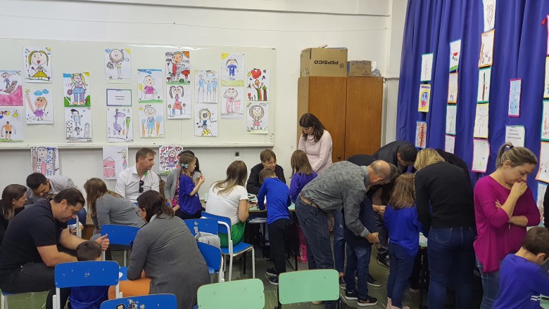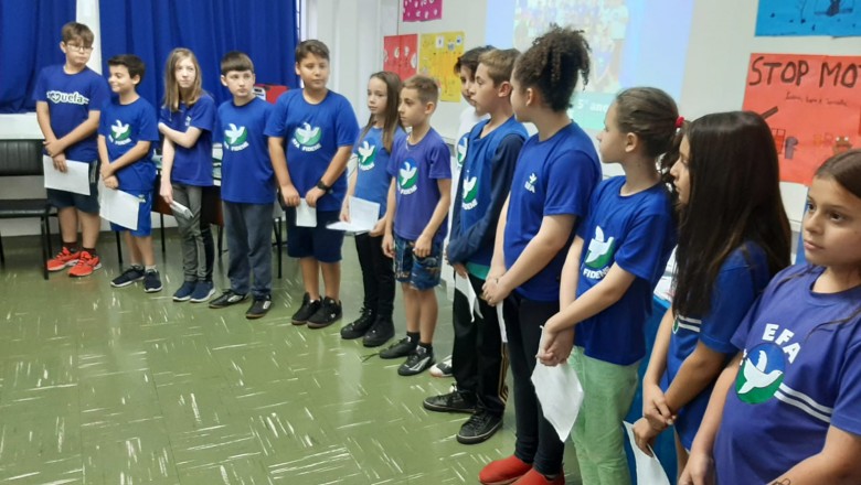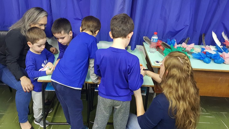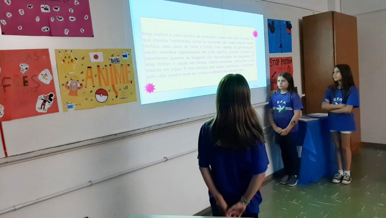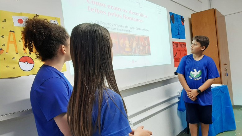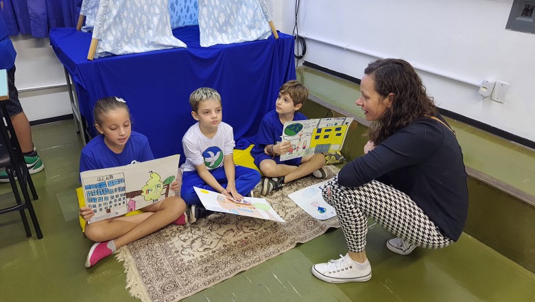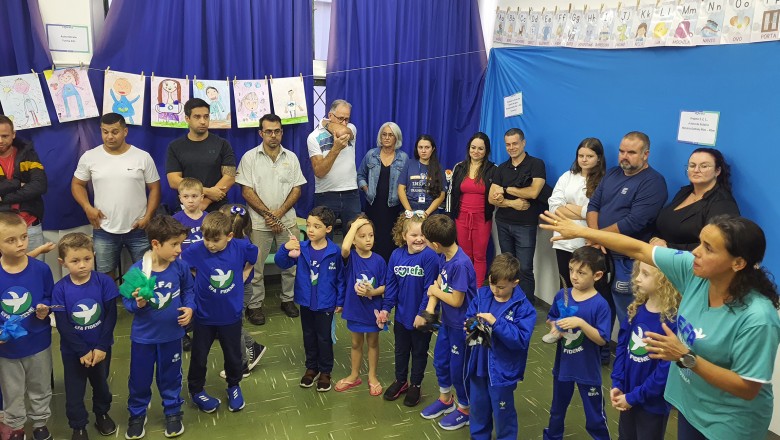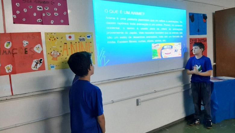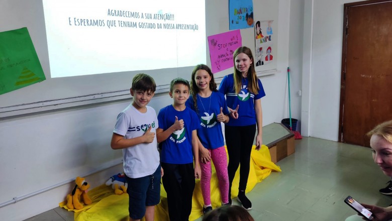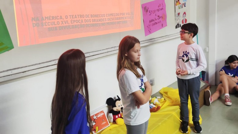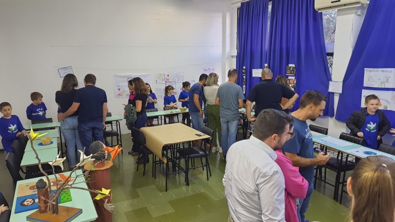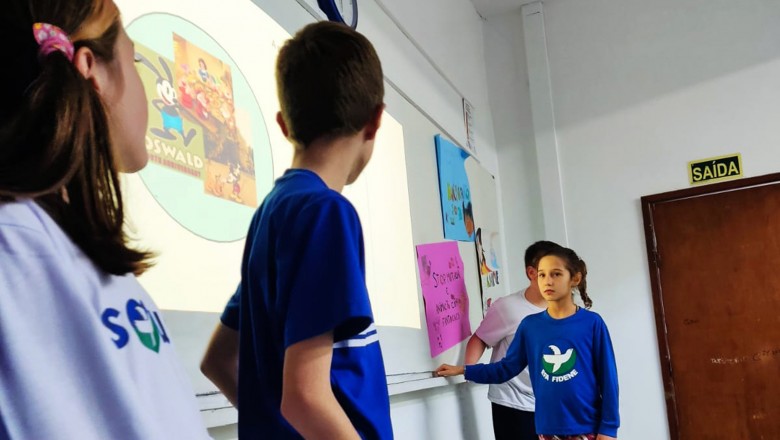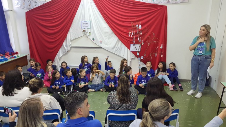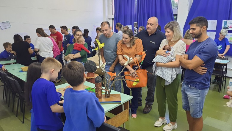 A Turma B22 apresentou os estudos sobre o planeta Terra baseados no filme Wall-e, as questões ambientais, os quadros feitos a partir da visita ao museu e as pesquisas sobre as árvores observadas em casa, já a turma B11 socializou os estudos do projeto “Se eu fosse uma gotinha de água”, apresentou a história Plim Plim para as famílias, confeccionando gotas com dicas de economia de água. A turma B12 dramatizou para as famílias a história “O ovo da vida”, refletindo através da escrita significativa, palavras motivacionais para serem cultivadas durante o ano, além da apresentação das petecas produzidas nas aulas de Educação Física, e a turma B21 apresentou a dinâmica de rotação por estações, de acordo com os trabalhos confeccionados em sala de aula, como jogos matemáticos e diversos gêneros textuais. As turmas B51 e B52 finalizaram as socializações de estudos apresentando poesias produzidas sobre gêneros textuais, além das pesquisas realizadas em grupos sobre "A história das animações" com o enfoque na Jornada de Pesquisa/2023.