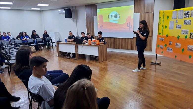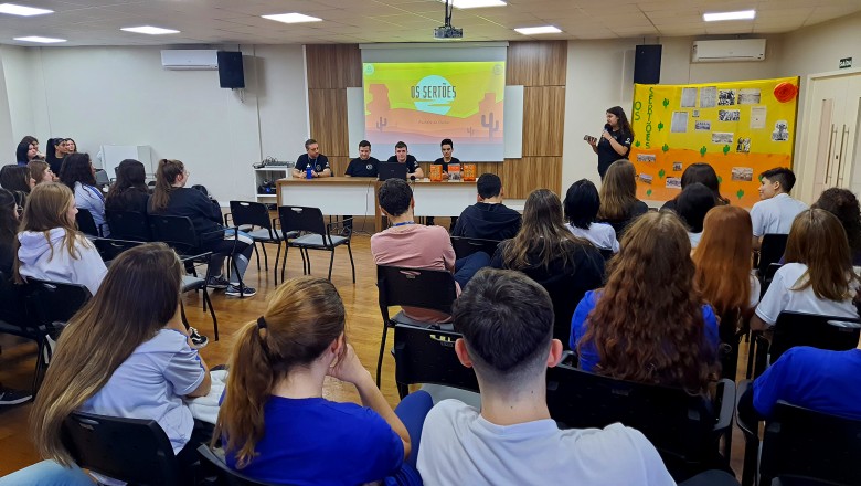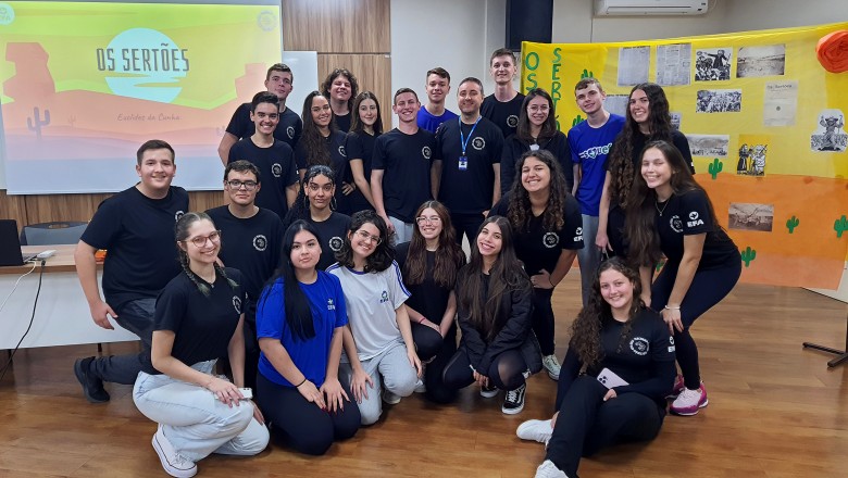 Na tarde desta segunda-feira, 05, a turma 231 promoveu a primeira Mesa Literária de 2023, colocando em pauta um dos maiores clássicos da literatura brasileira, Os Sertões. O encontro aconteceu no Centro de Eventos da Unijuí e contou com a presença das demais turmas do Ensino Médio da escola.