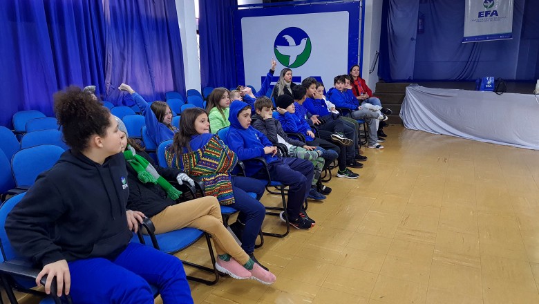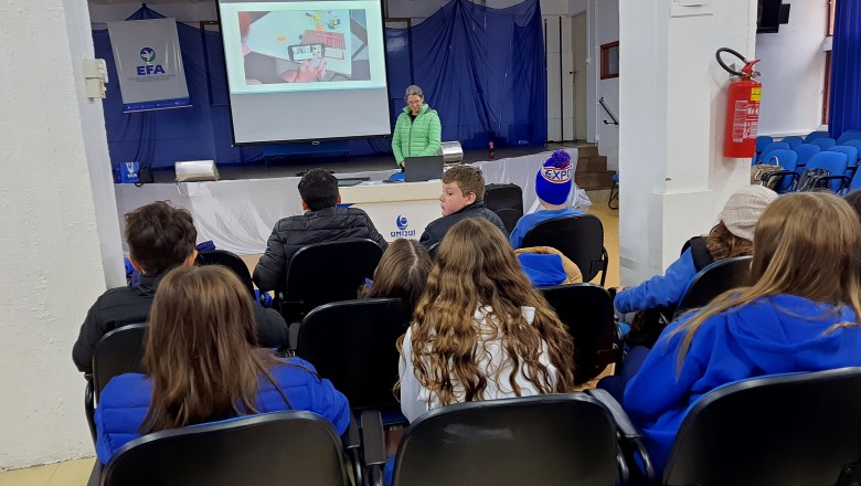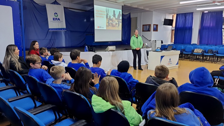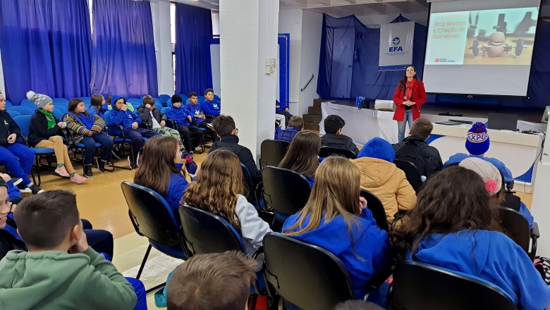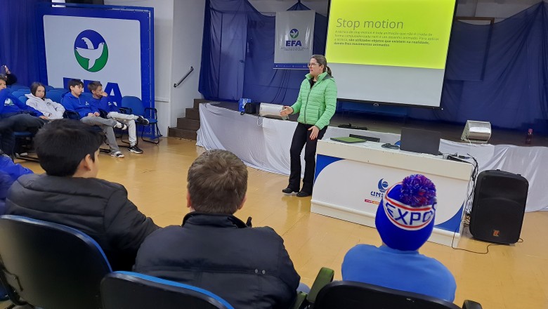O primeiro encontro aconteceu no auditório da Escola, onde a professora Rúbia Schwanke e a jornalista e técnica do laboratório da Unijuí, Andriele Müller, compartilharam conhecimentos sobre os conceitos fundamentais da técnica de Stop Motion. Além disso, elas auxiliaram os estudantes na criação de suas próprias histórias, mostrando caminho e possibilidades enquanto animação de personagens.