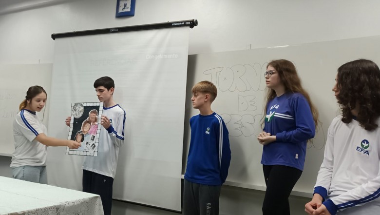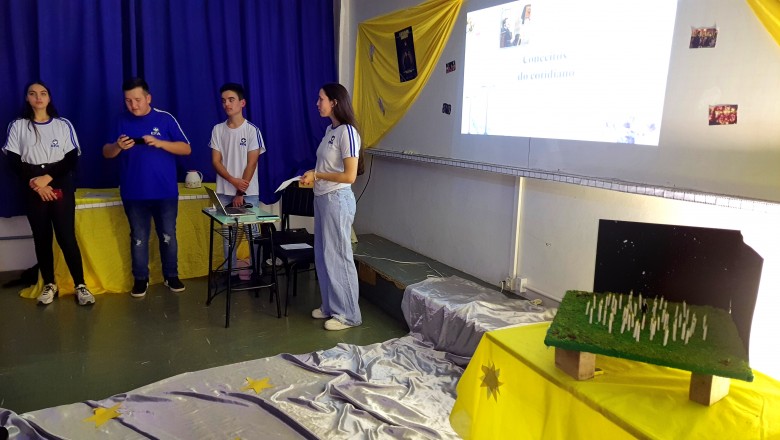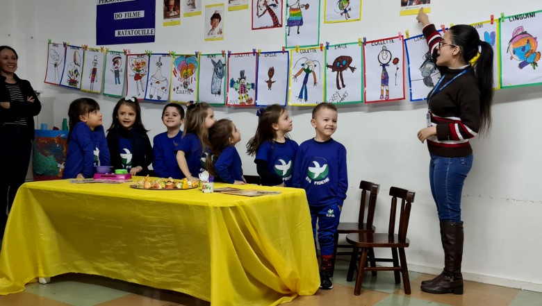 A última etapa aconteceu com a socialização das pesquisas para a comunidade escolar, durante os meses de junho e julho, trazendo uma imersão através de salas temáticas de cada filme.
