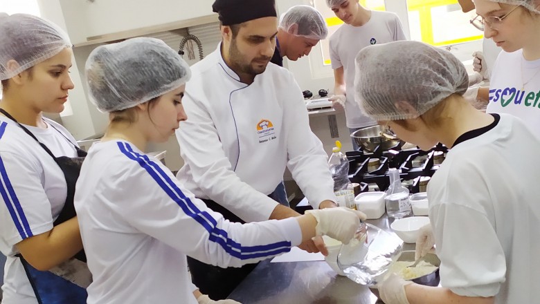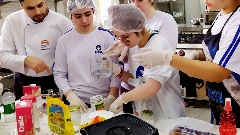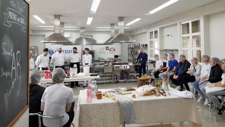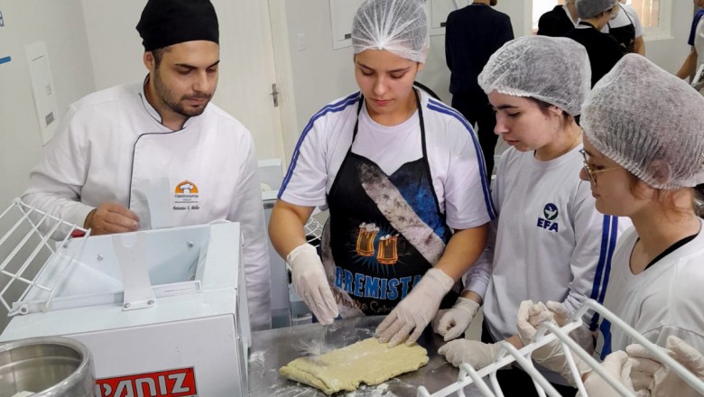 Na última quinta-feira, 24.08, as turmas 211 e 212 do Novo Ensino Médio: Conexões EFA, vivenciaram nos Laboratórios de Gastronomia e Nutrição da Unijuí atividades práticas sobre processos fermentativos aplicados à produção de alimentos. Nesta ocasião, os alunos executaram algumas receitas, acompanhados de professores e alunos do Curso de Gastronomia, um estudo que ampliou aprendizagens e contribuiu no processo de formação dos estudantes.