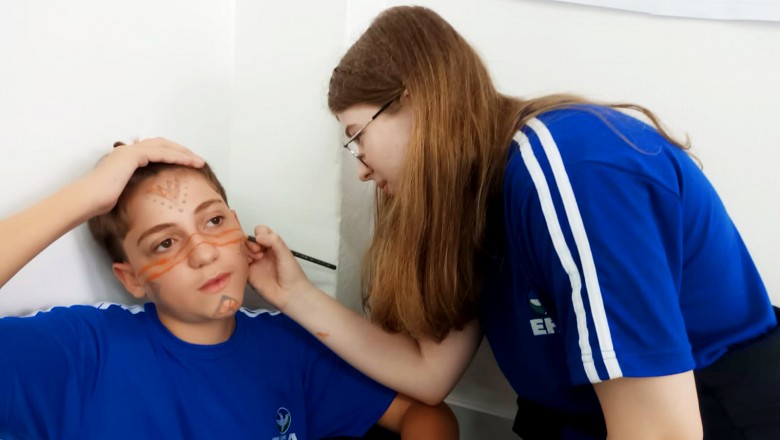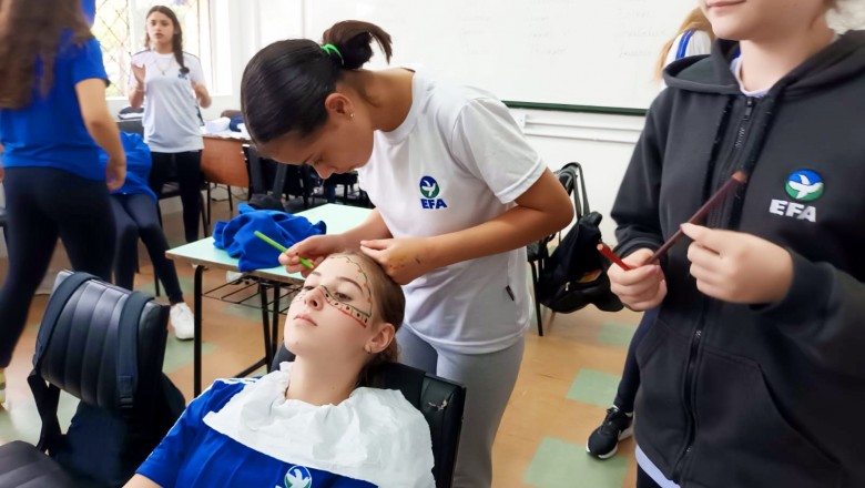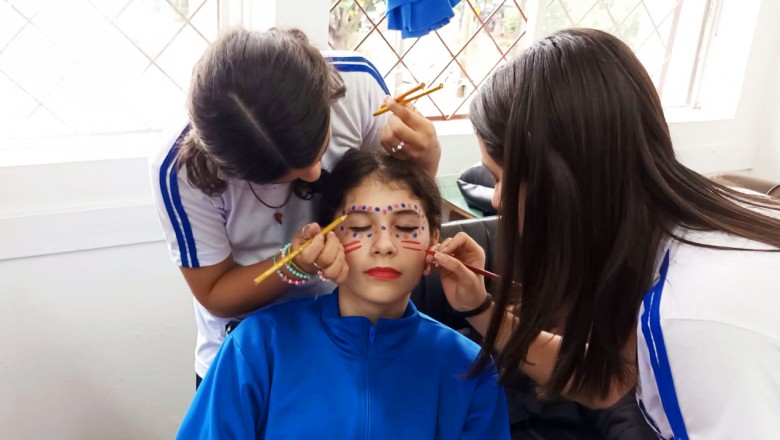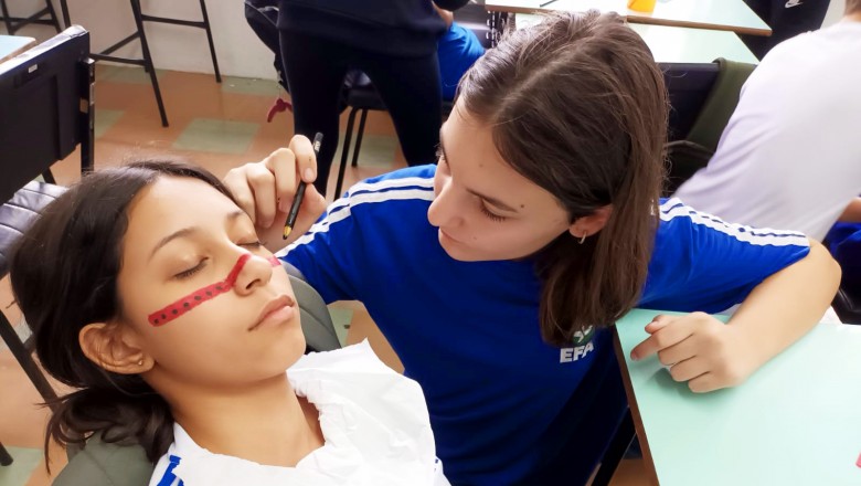 Com o intuito de promover o respeito e o cuidado com os integrantes das tribos indígenas, a atividade propôs que alguns alunos se voluntariassem para ter o rosto pintado pelos colegas. Através da técnica da Body Art, os estudantes puderam sentir na própria pele a importância dos grafismos como forma de expressão cultural, identidade e conexão com a natureza.