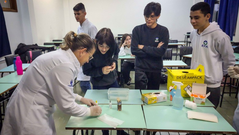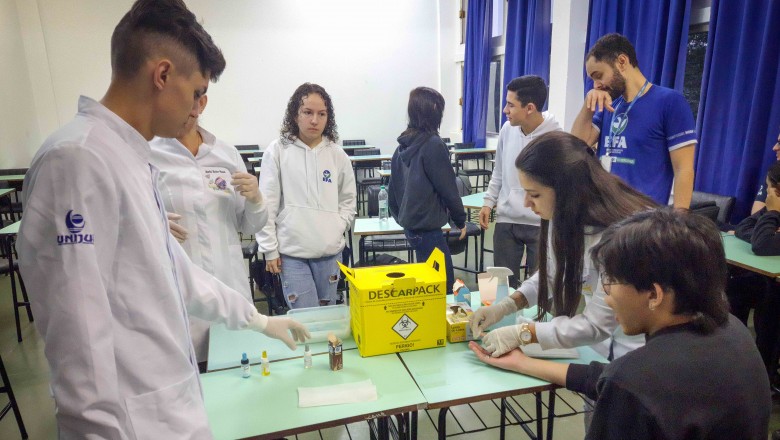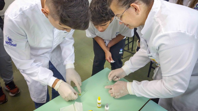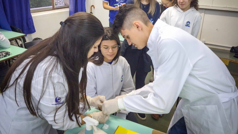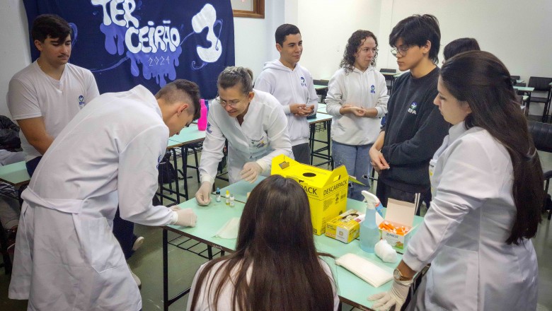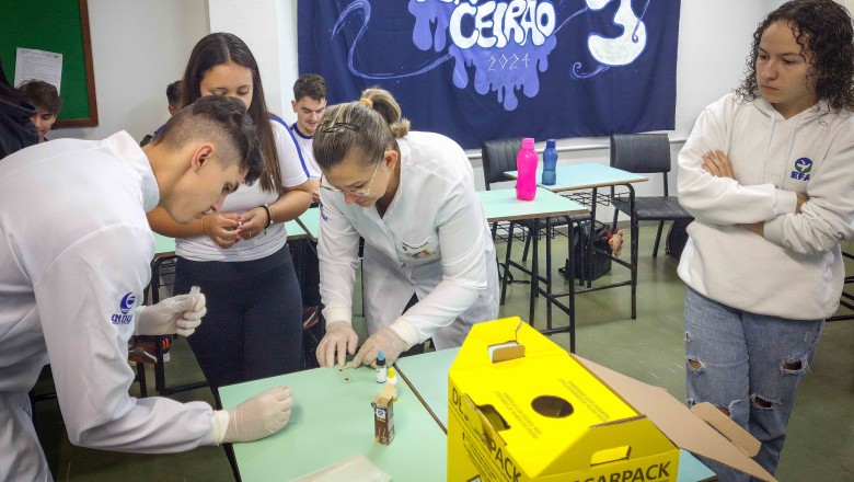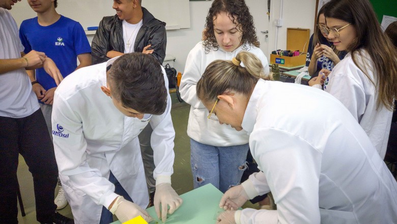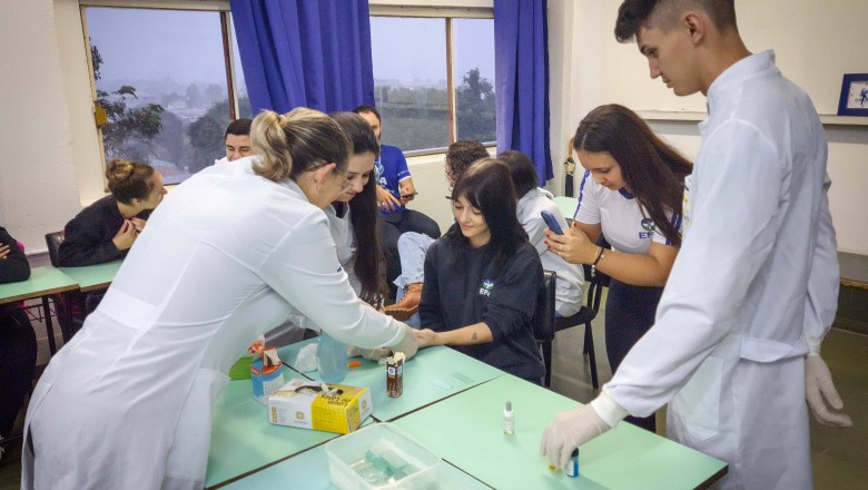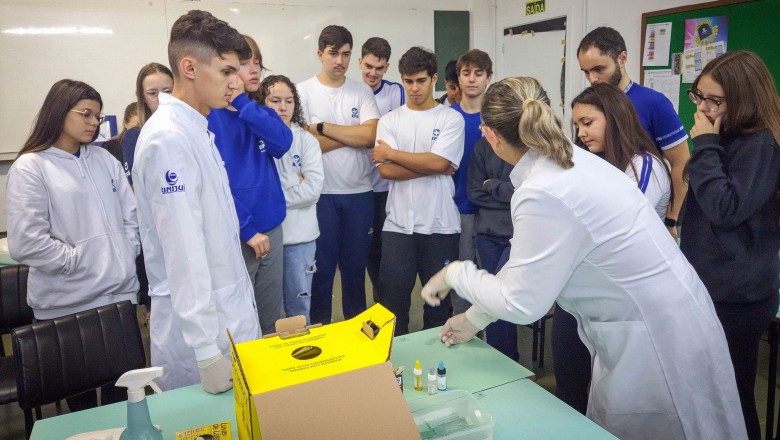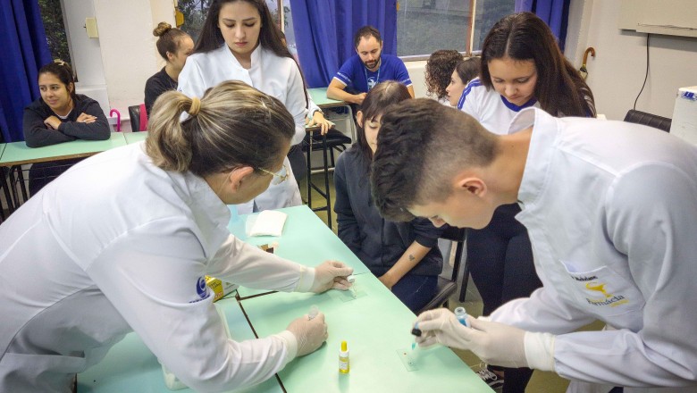 Na oportunidade, foi desenvolvida uma oficina a cargo do curso de Farmácia da Unijuí, proposta pelas professoras Angélica e Marilei, e na sequência, foi realizado três estudos de caso com três doenças genéticas: Fibrose cística, Doença de Alzheimer e acondroplasia, no qual os alunos realizaram o cálculo da probabilidade de ocorrência da doença, bem como, uma pesquisa sobre as mesmas.